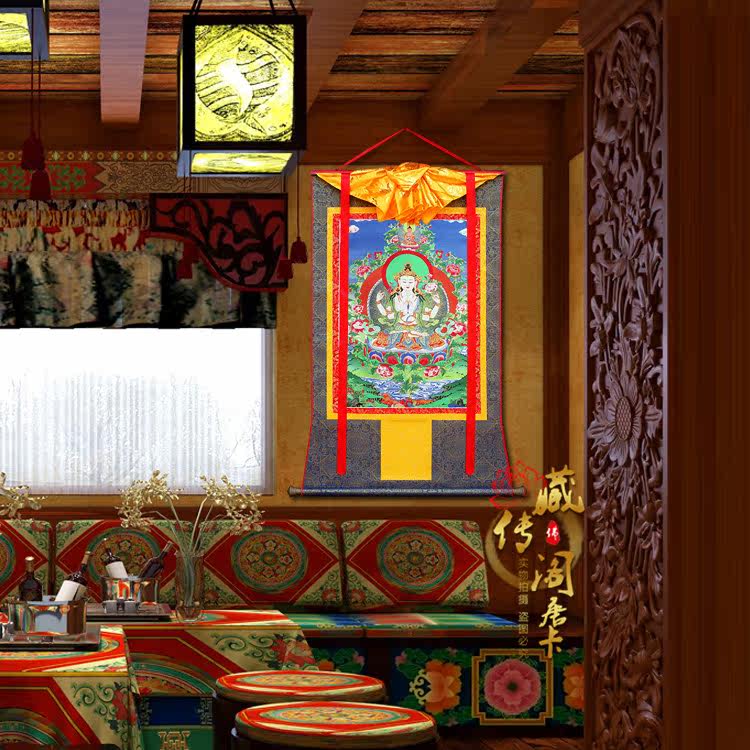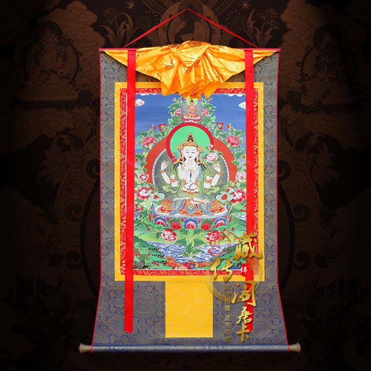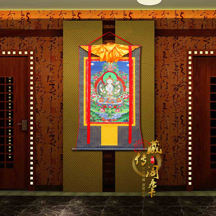 Тибетский павильон четырех -Гуаньин Тхангка живопись вышивка Буддийская буддийская портретная тантра Тибетская живопись с золотой живопись