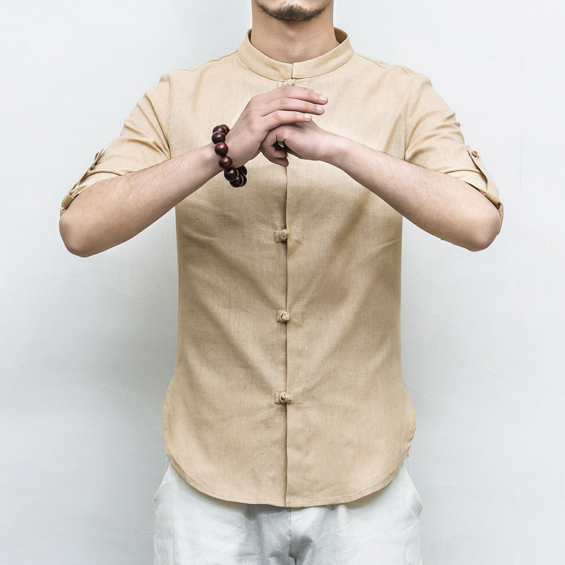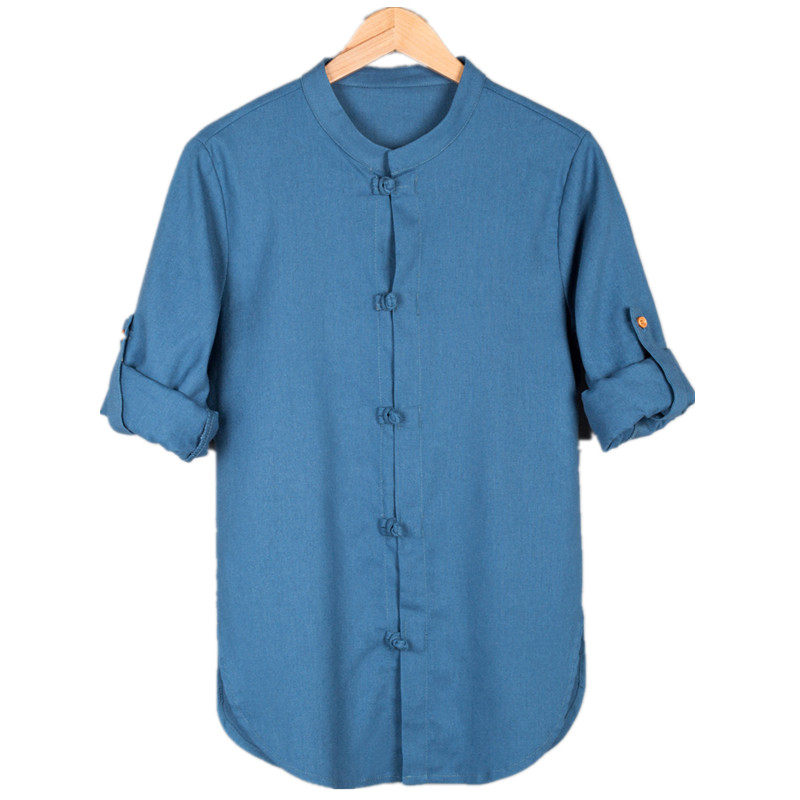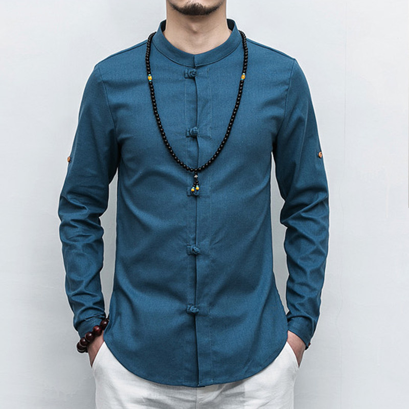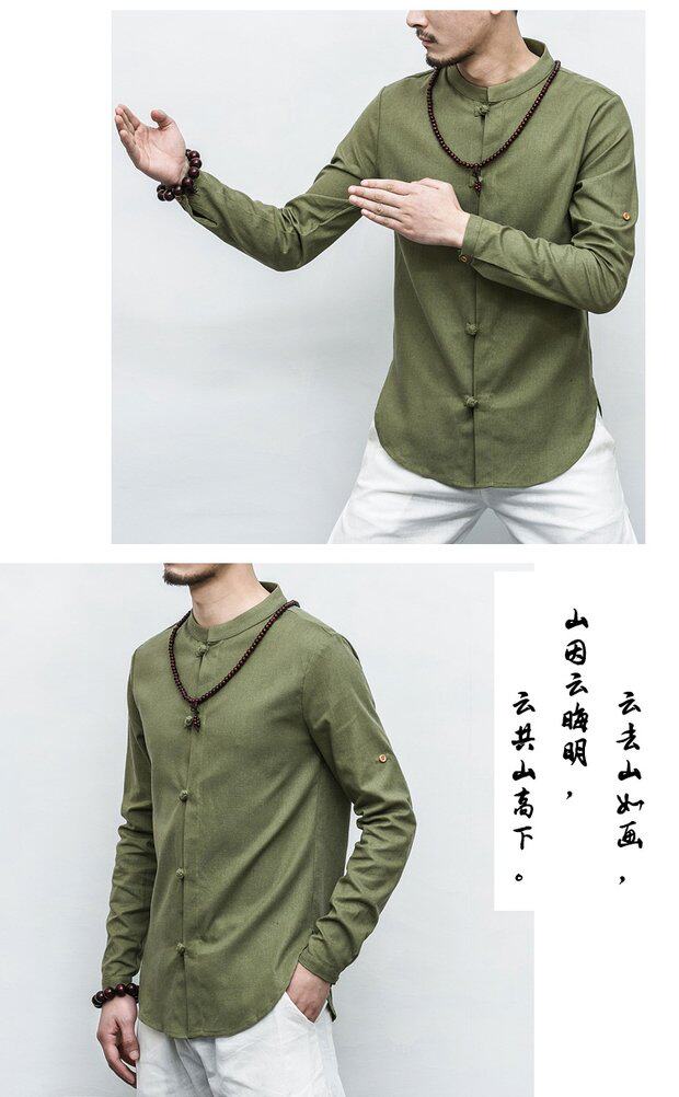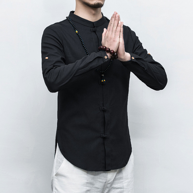 Весенняя рубашка, лонгслив, китайский стиль, облегающий крой, большой размер