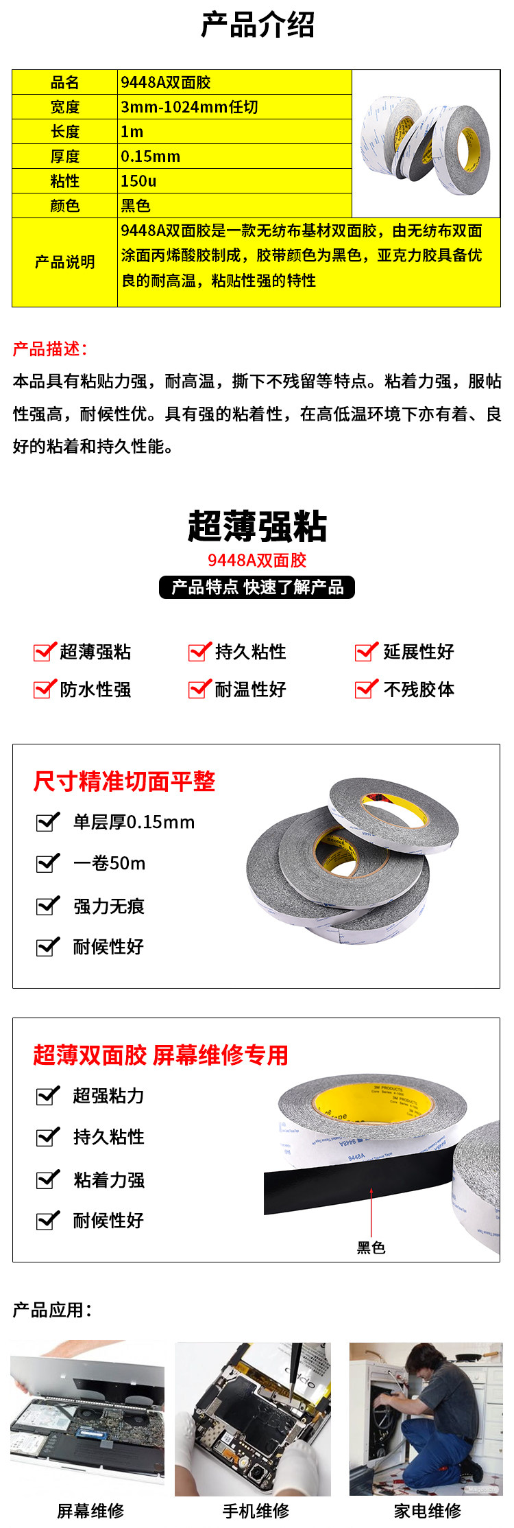 Черный двусторонний скотч, ультратонкая термостойкая лента, радиатор