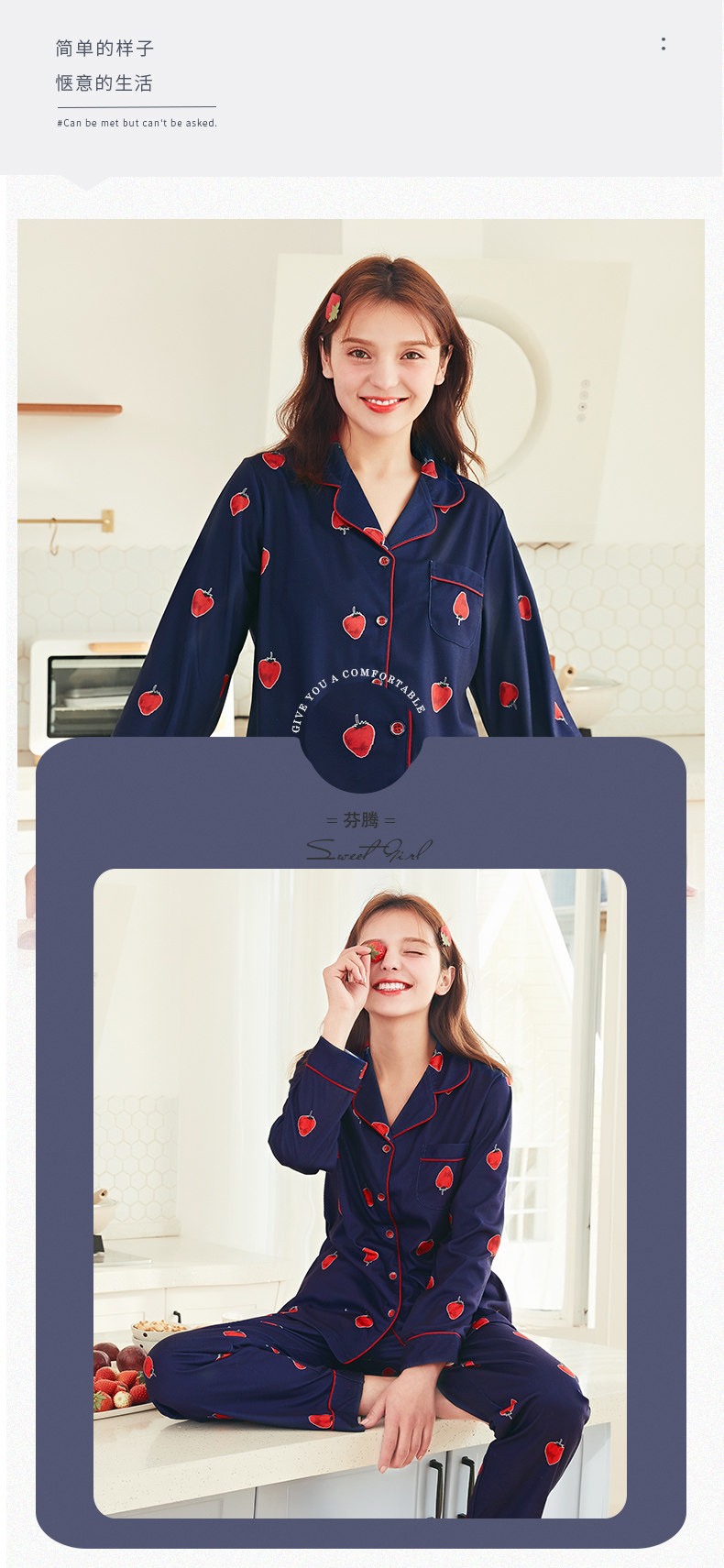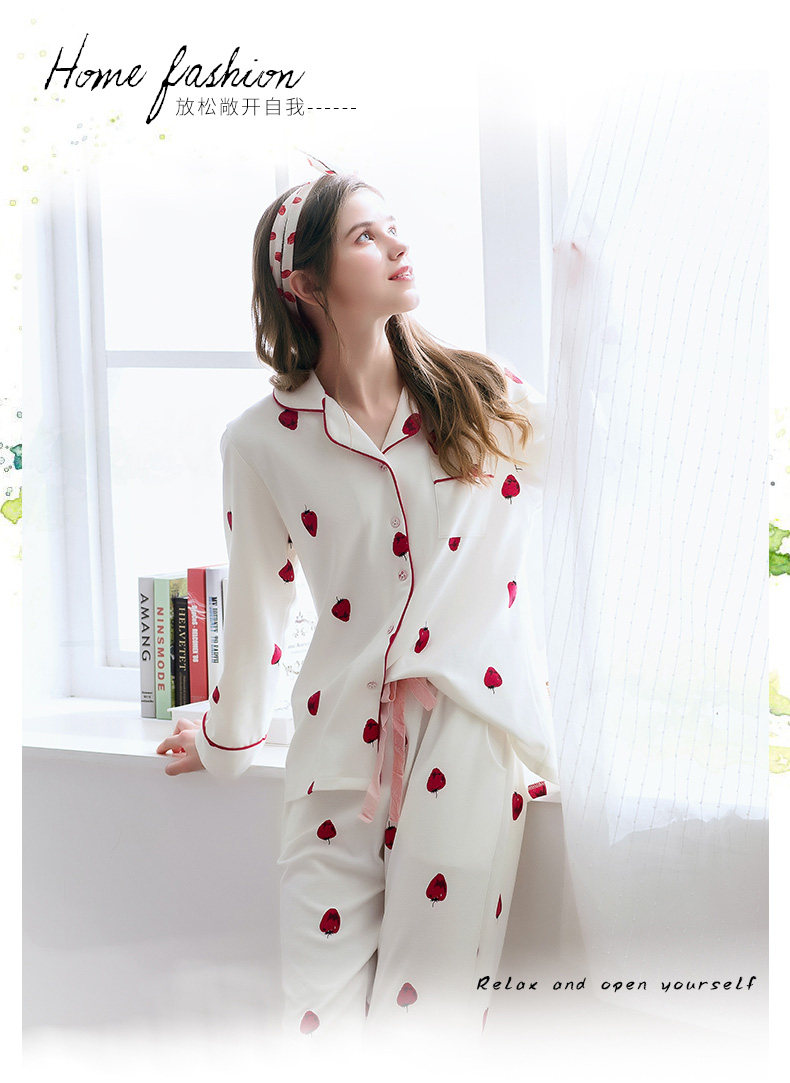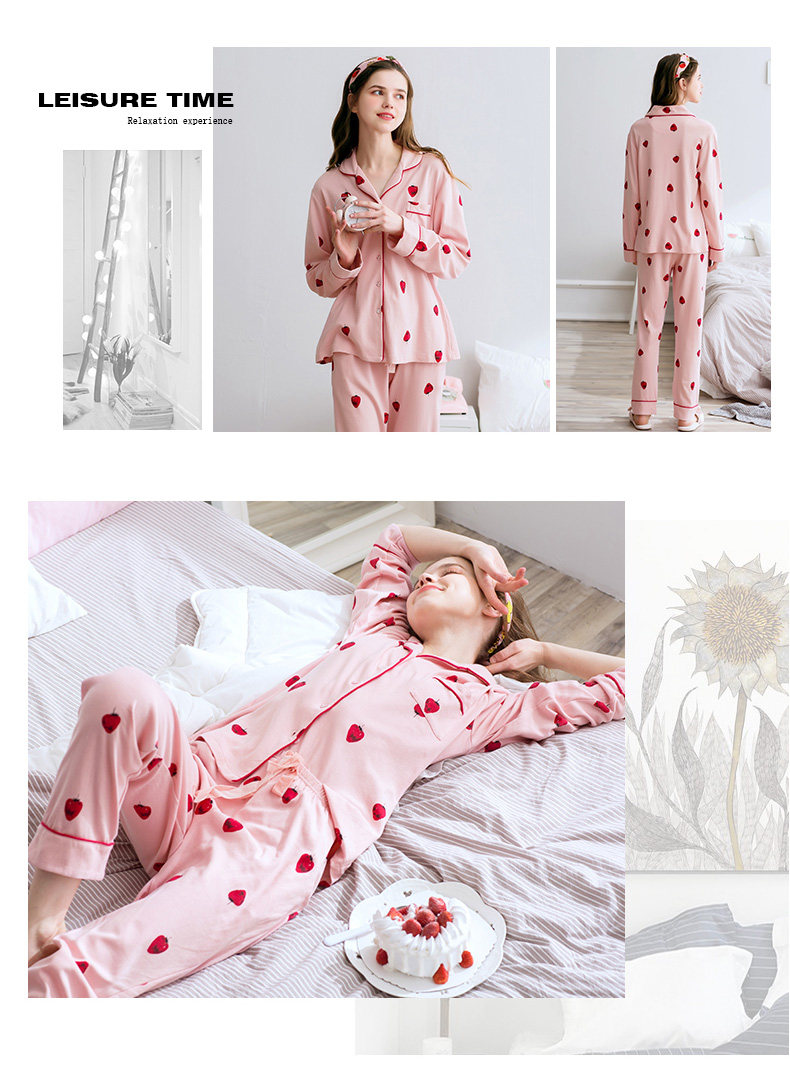 芬腾 Клубника, весенняя хлопковая пижама, милый лонгслив, кардиган, комплект, новая коллекция