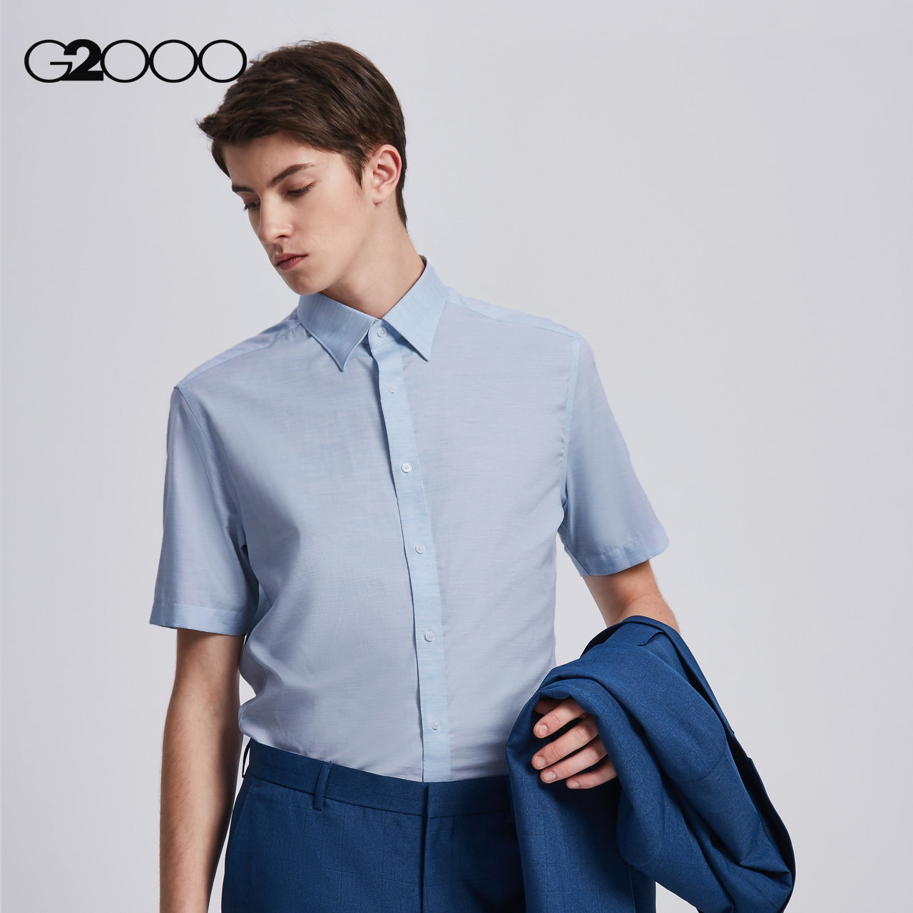 G2000 Летняя синяя дышащая рубашка, короткий рукав