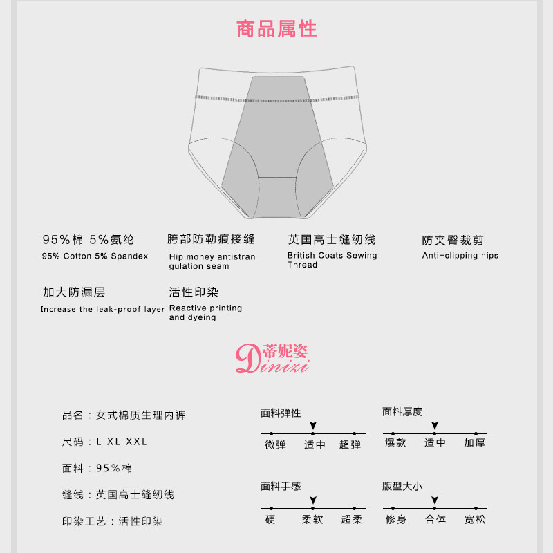 Хлопковое физиологичное герметическое дышащее нижнее белье, комфортные штаны, средняя посадка