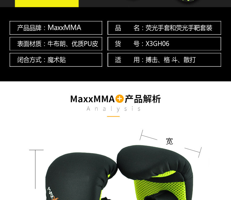 MaxxMMA Флуоресцентный мешок с песком, боксерские перчатки для тренировок, можно стирать