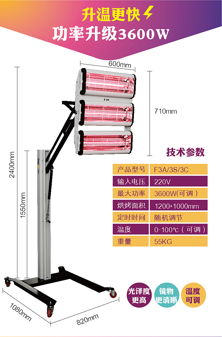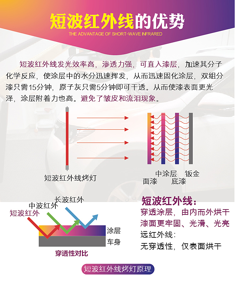 Лампа для краски, автомобильная краска, аэрозольная краска, мощная мобильная коротковолновая инфракрасная лампа для краски, высокотемпературная сушильная лампа для покраски помещения