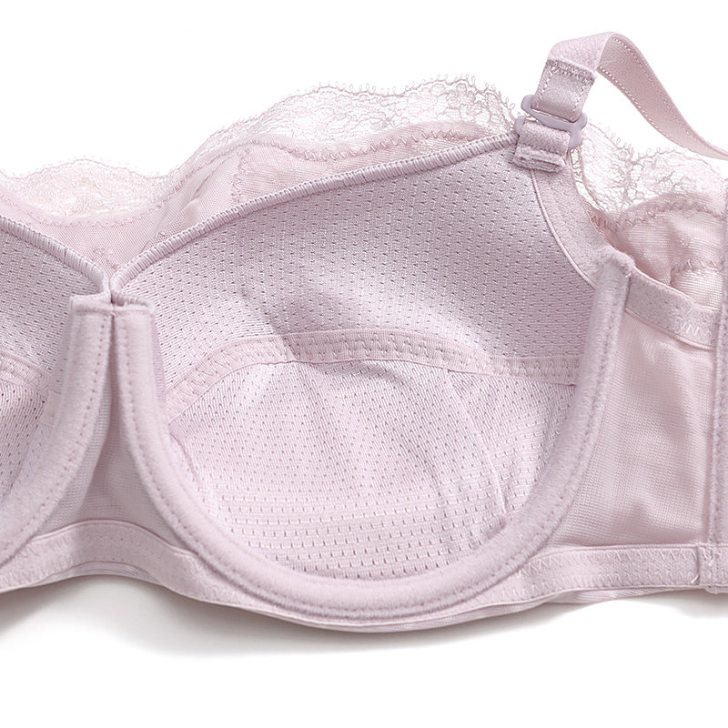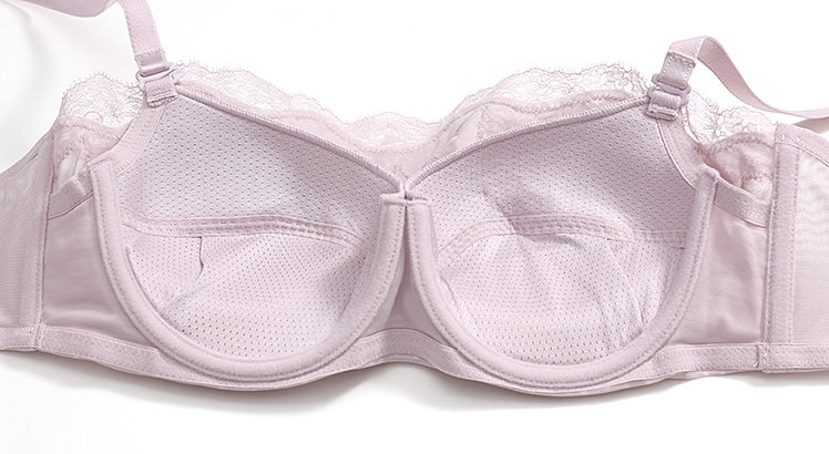 Поверхность чашки - это общая плоская ткань сетки в горошек, текстура мягкая и эластичная, а простой и интегрированный стиль освежает и универсален, в сочетании с кружевным украшением на груди, которая является уникальным и романтичным.