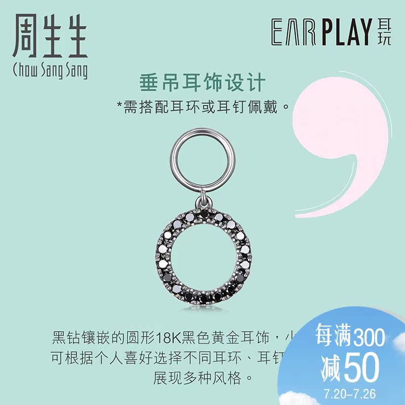 周生生 Серьги Let's Play из золота 18 карат с черными бриллиантами (обработанными), одиночный аксессуар 89861H