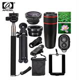 10в1 «рыбий глаз» + широкоугольный + макро + телеобъектив для iPhone 5 6S Plus селфи-палка монопод штатив для телефона Samsung объектив 12X10in1