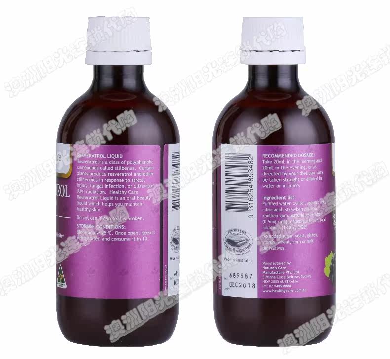 Австралийская прямая почтовая почта Здоровая помощь. Ресвератрол Уродный Dalm 200 мл 4 бутылки стоимости -налог на доставку.