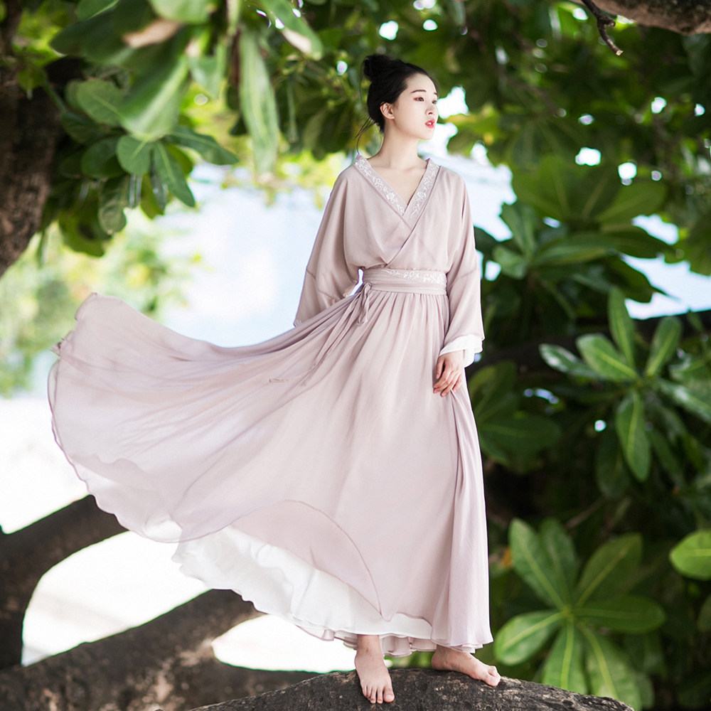 Ретро ханьфу, осенняя демисезонная длинная юбка, платье, с вышивкой, яркий броский стиль
