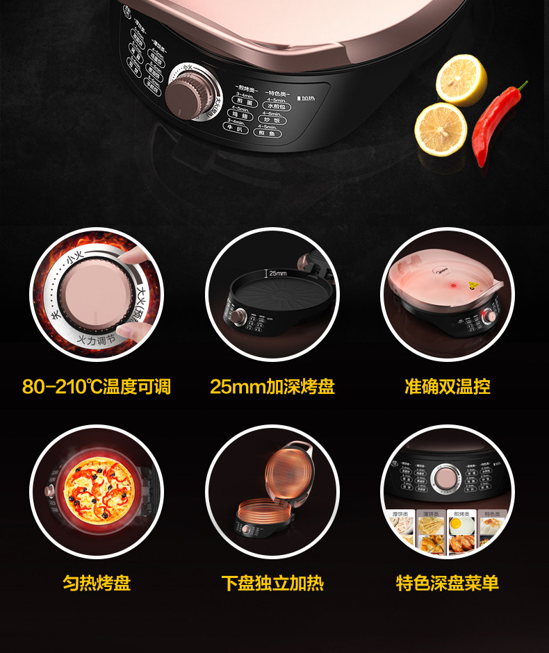 Электрическая запеченная кастрюля Midea, домохозяйственное нагревание, углубление пекарни -машины с электрической жарой, многофункциональная пластина для барбекю