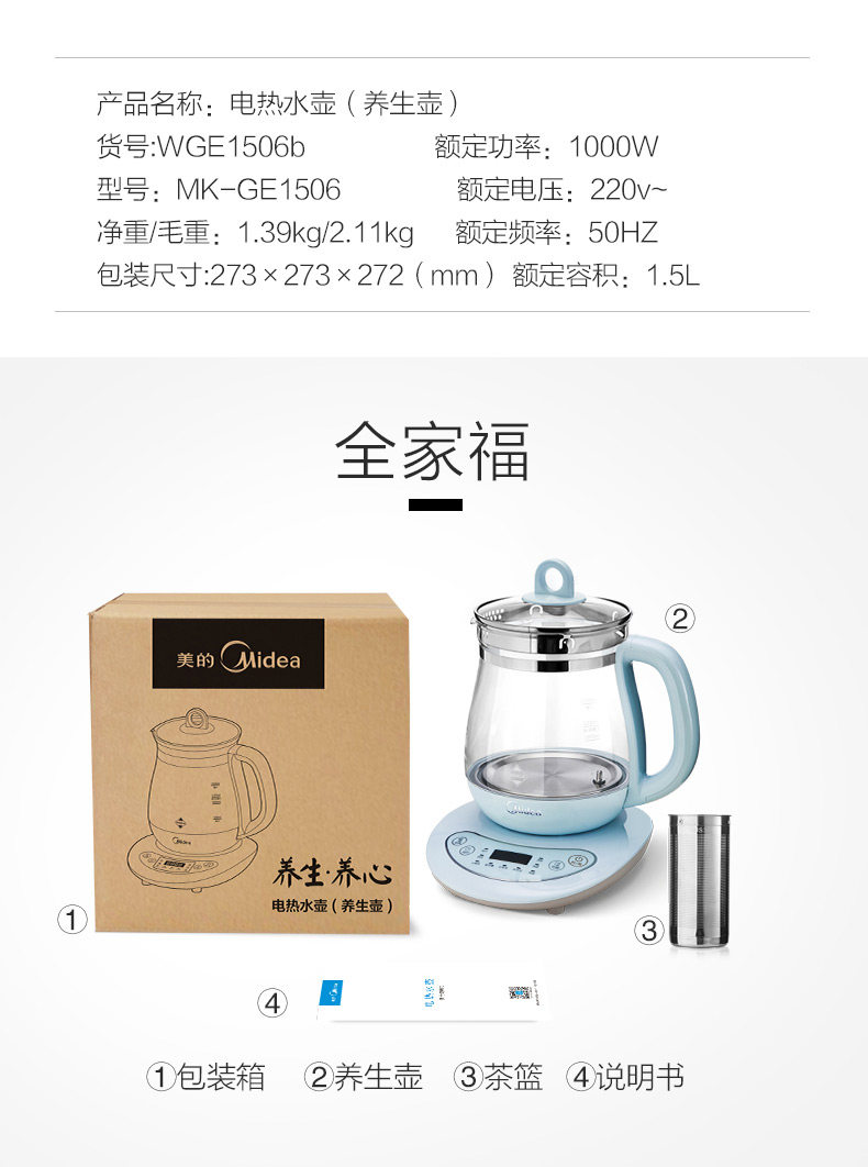 Midea/美的 GE1506B Многоофункциональный Health Pot Подличный отвар -карт электрический горячий чайник горшок чайник
