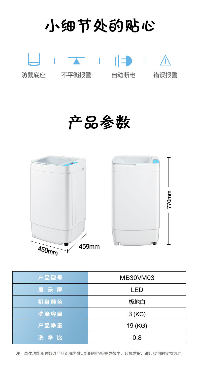 Midea Childra's Baby Mini Parlemance Automatic Small Small 3 кг кг турбулентная комбинация MB30VM03