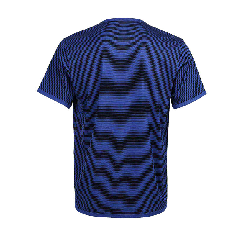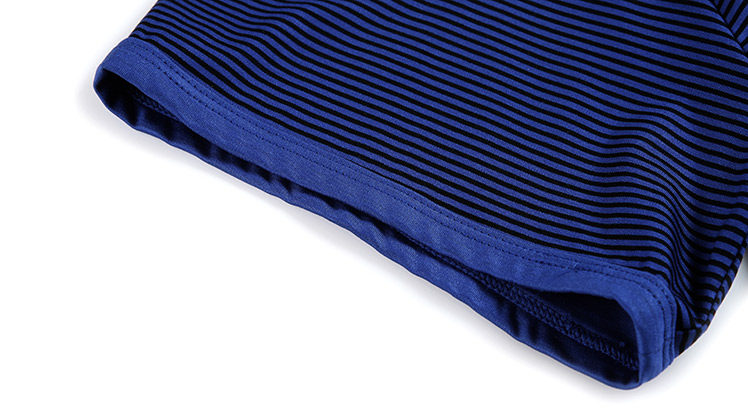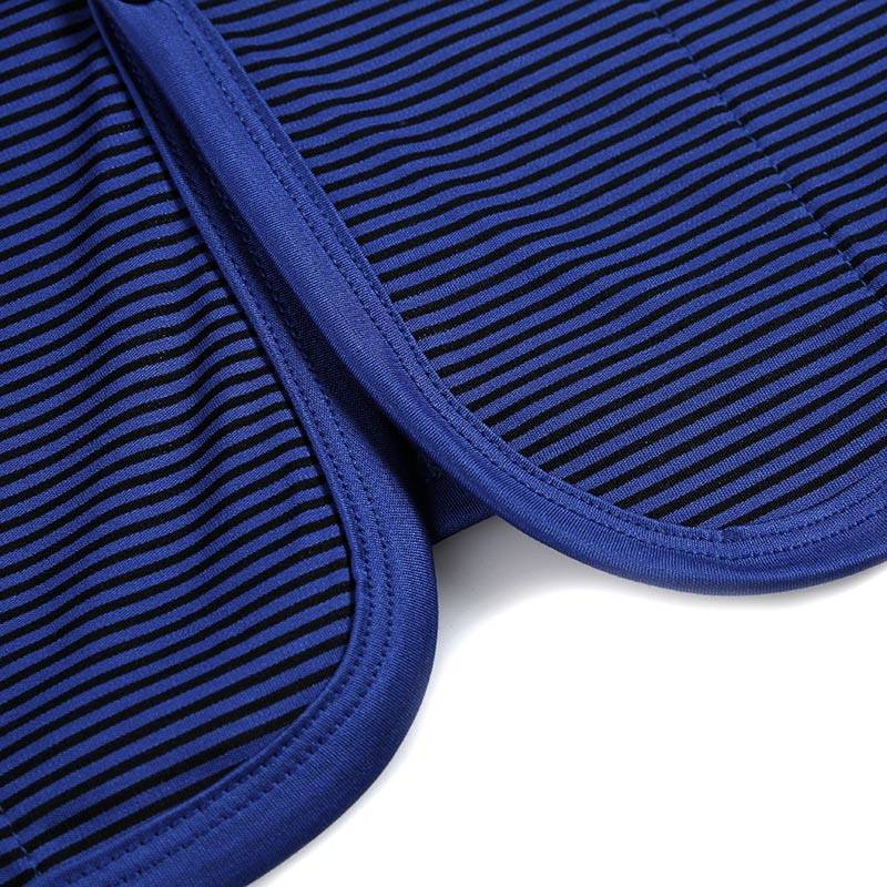 Изготовлен из смеси модала и спандекса, имеет нежную и мягкую текстуру, шелковистую поверхность и принт в синюю полоску. Его приятно носить, он легкий и удобный, он приносит вам личное удовольствие в жизни.