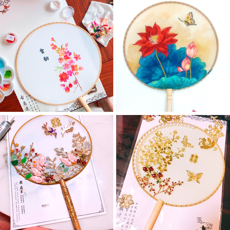 Шелковый классический круглый веер, ручная роспись, DIY, с вышивкой