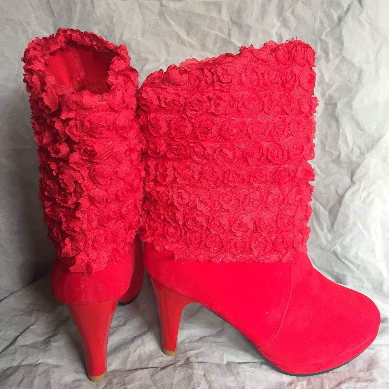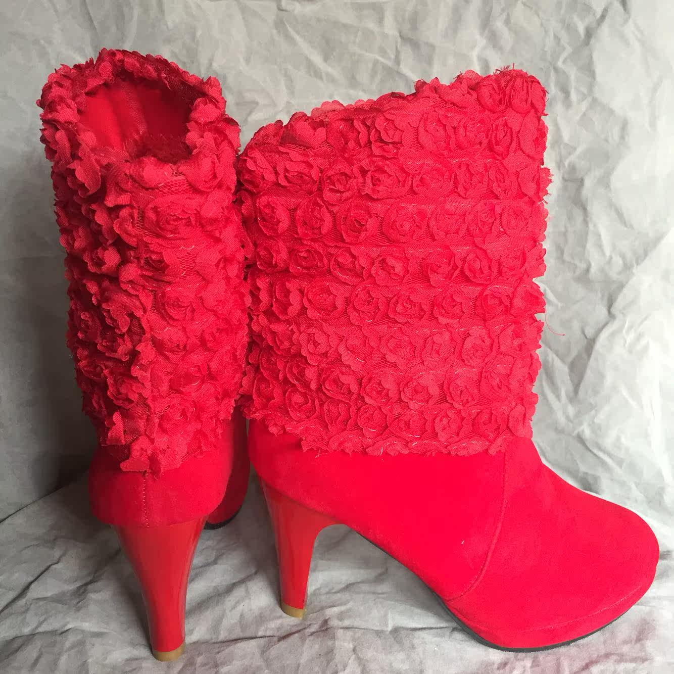 Зимние ботинки для невесты, свадебные туфли, красные короткие сапоги