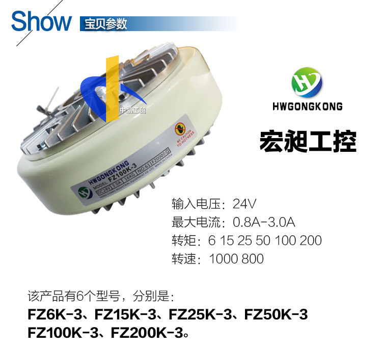 Прозрачная ось магнитная порошковая тормозной магнитное порошковое тормозное отверстие Контроль тормоза и рулоны FZ100K