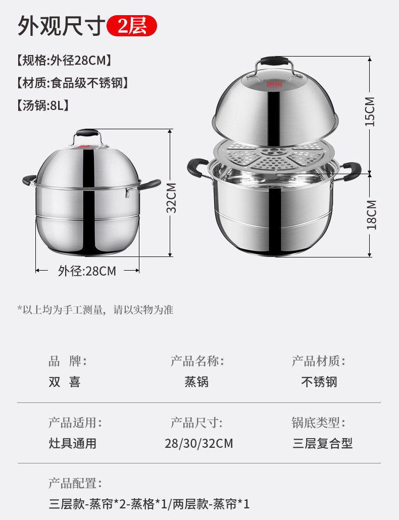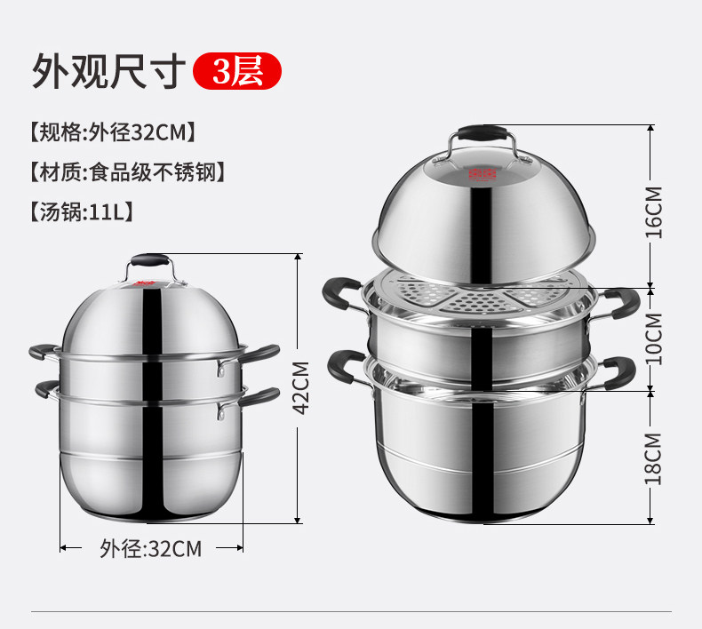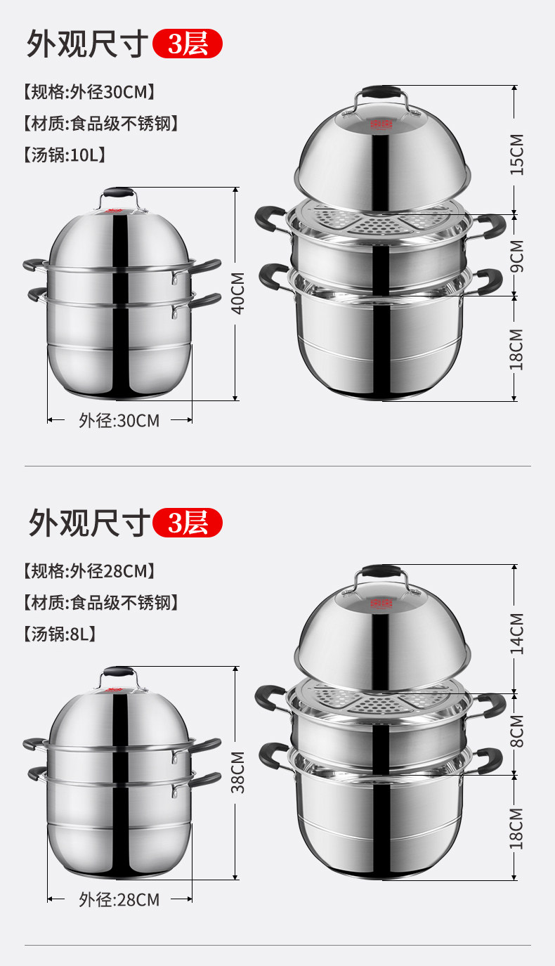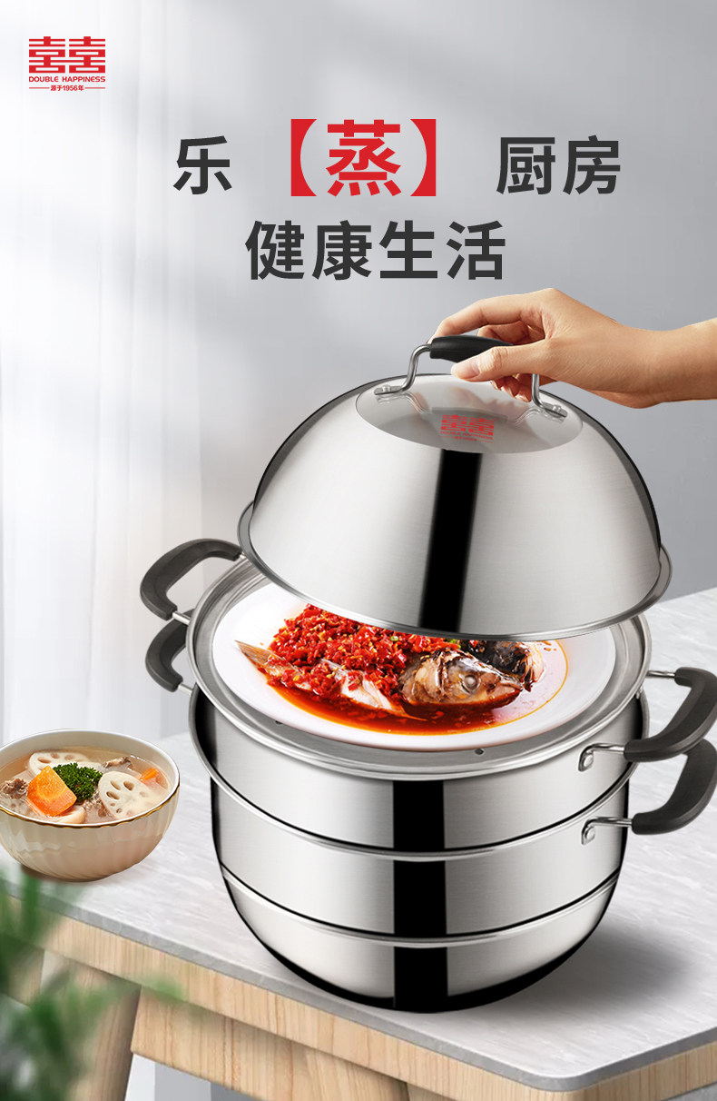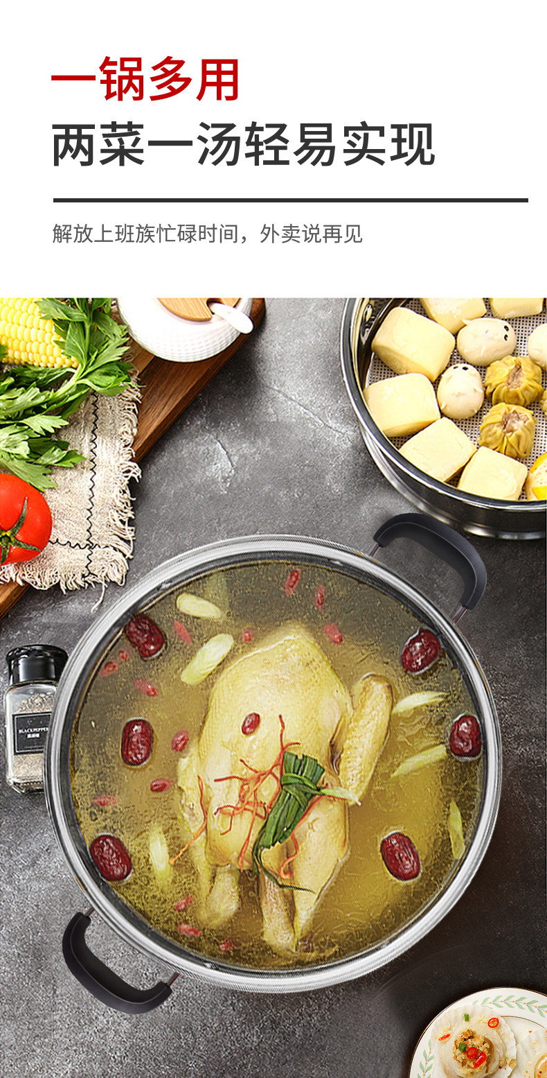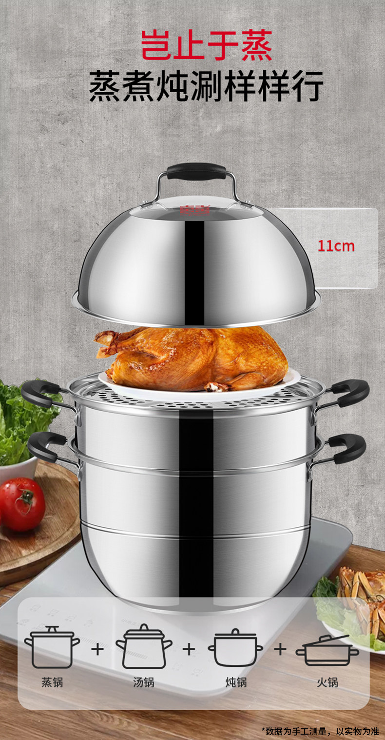 Двухэтажная электромагнитная пароварка из нержавеющей стали, увеличенная толщина