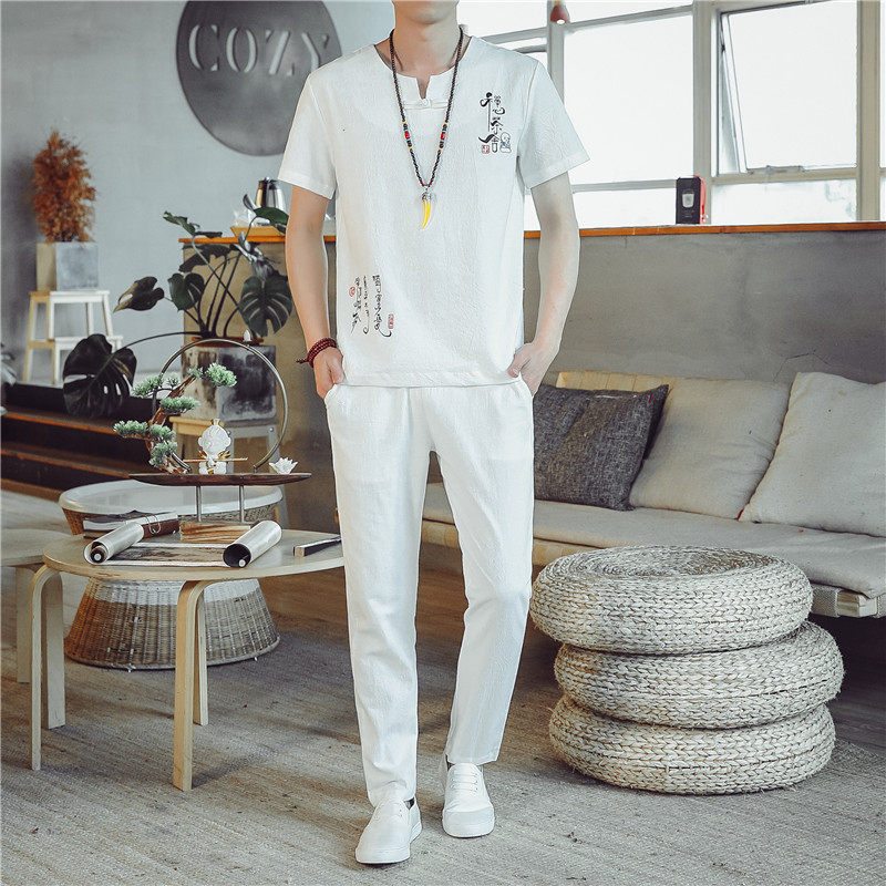 Мужской летний трендовый комплект, летняя одежда, из хлопка и льна, короткий рукав, большой размер