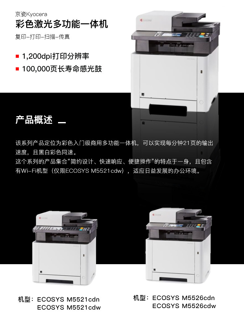 Kyo фарфор/Kyocera M5521CDN Цвет лазер многофункциональный все -ин -один