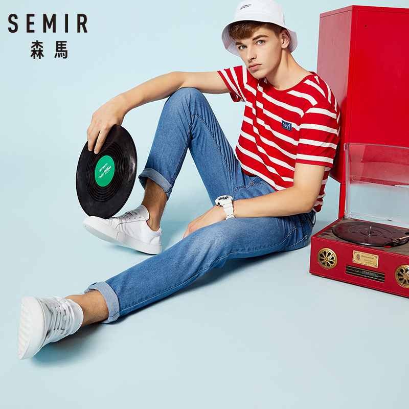 Semir, джинсы, мужская летняя одежда, штаны, в корейском стиле, свободный прямой крой