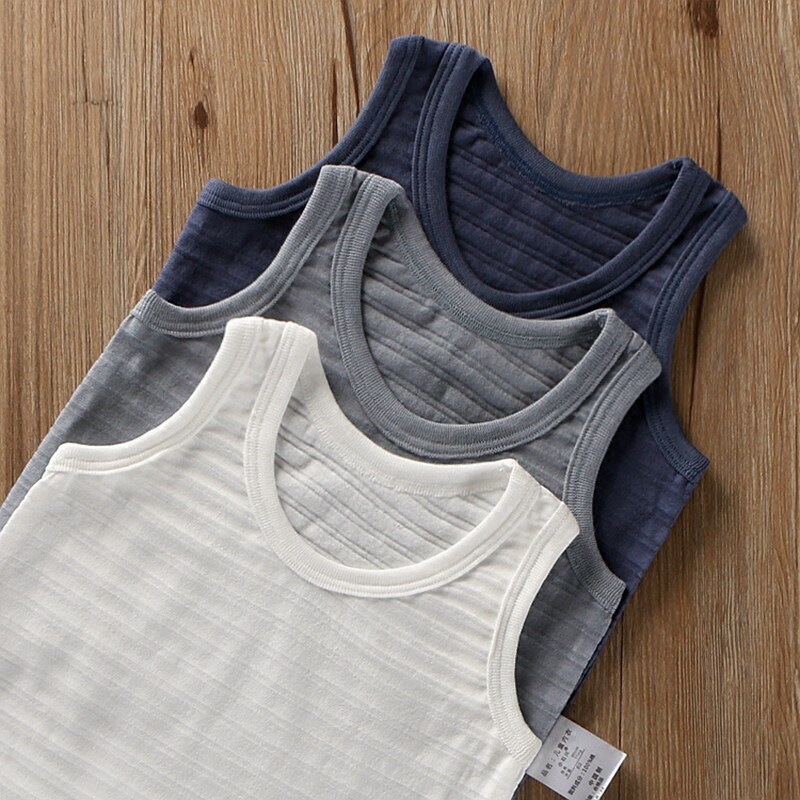 Тонкая бамбуковая хлопковая летняя одежда для мальчиков, детская футболка без рукавов, цветная майка