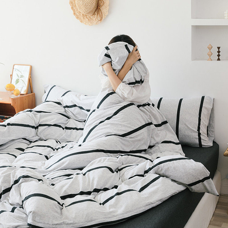 Японский хлопковый трикотажный комплект, мягкая кровать, покрывало, простой и элегантный дизайн, 4 предмета