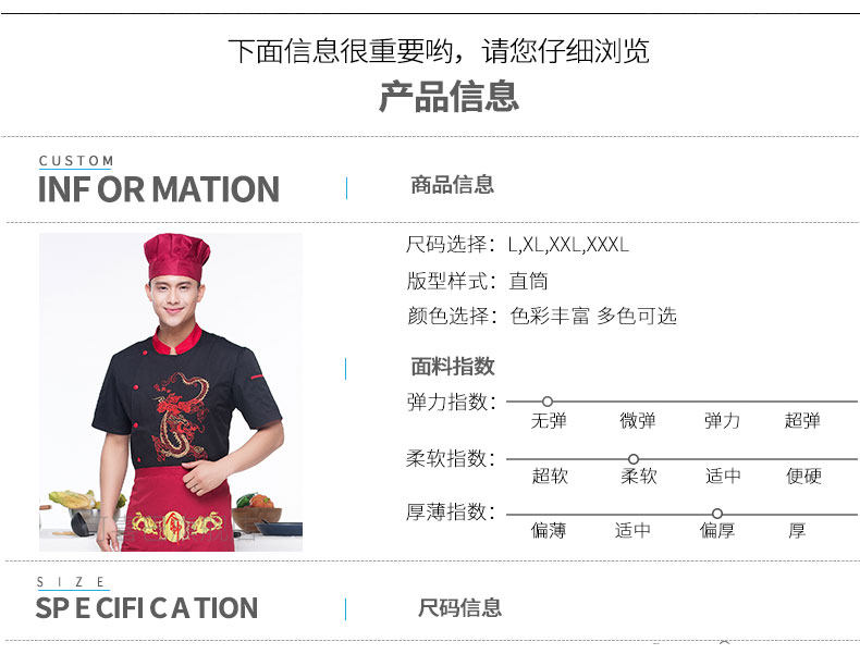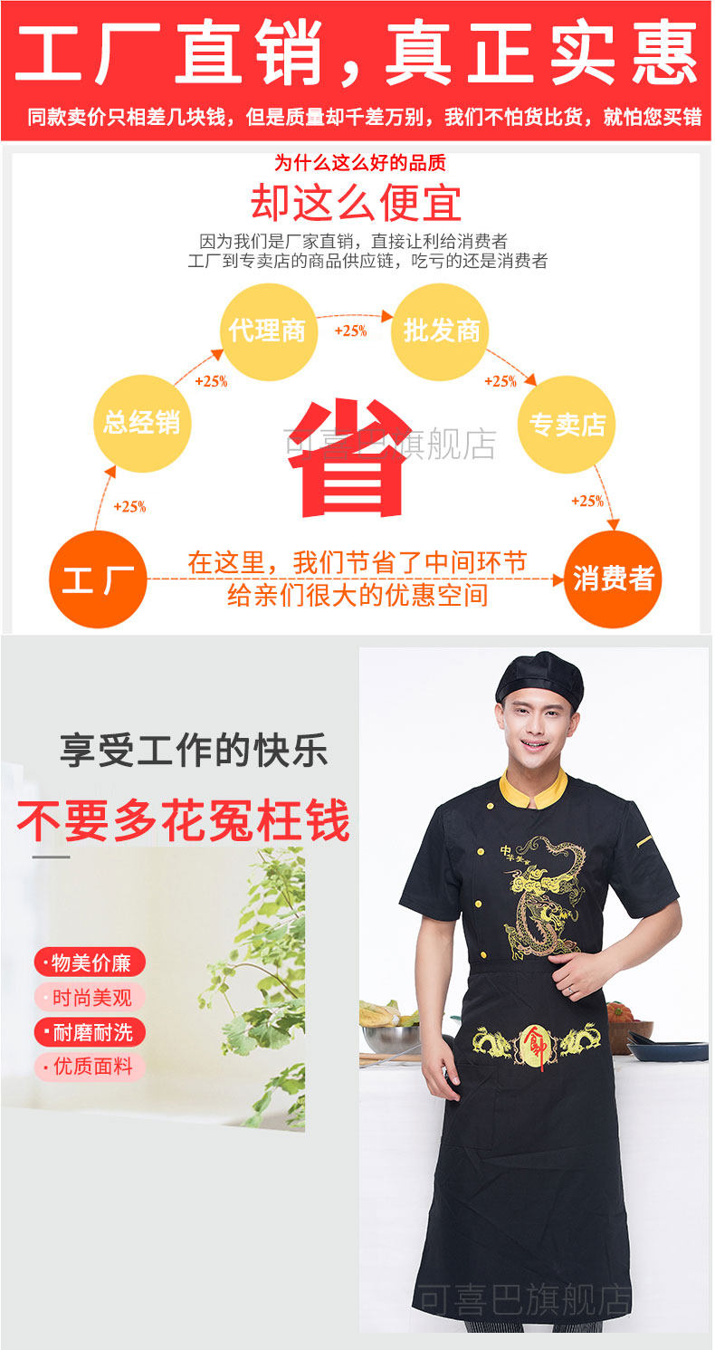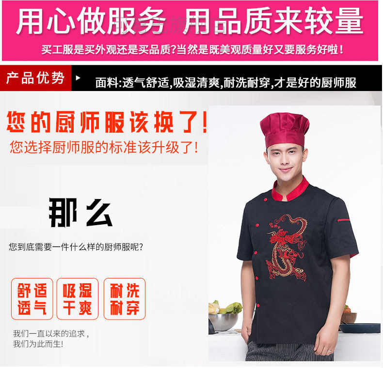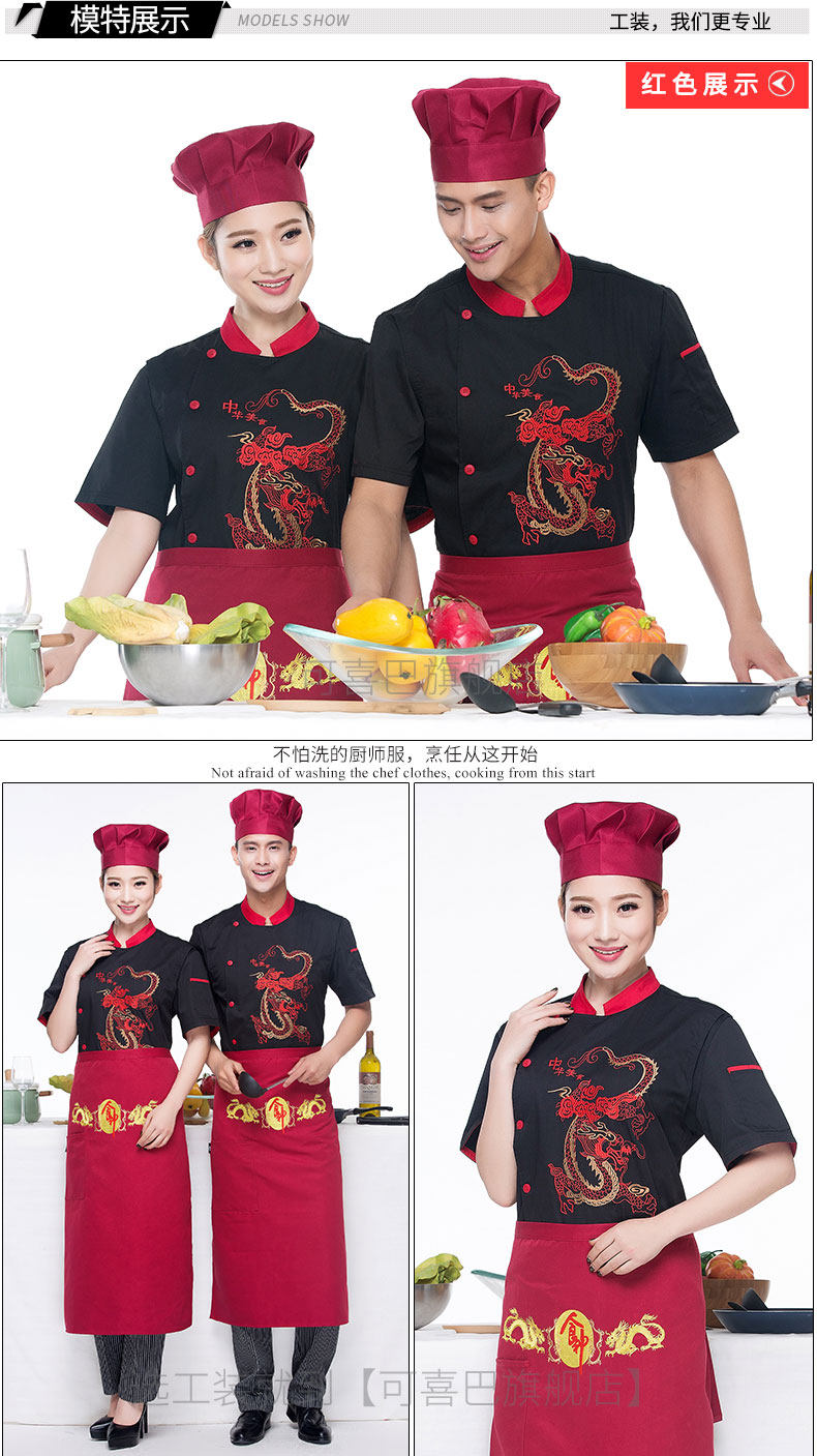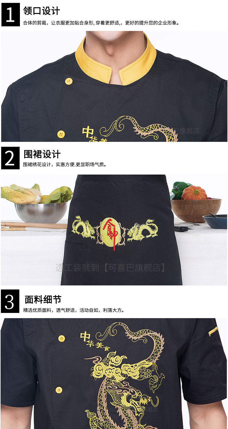 Вышитый отель Dragon Chef Chef костюм с коротки