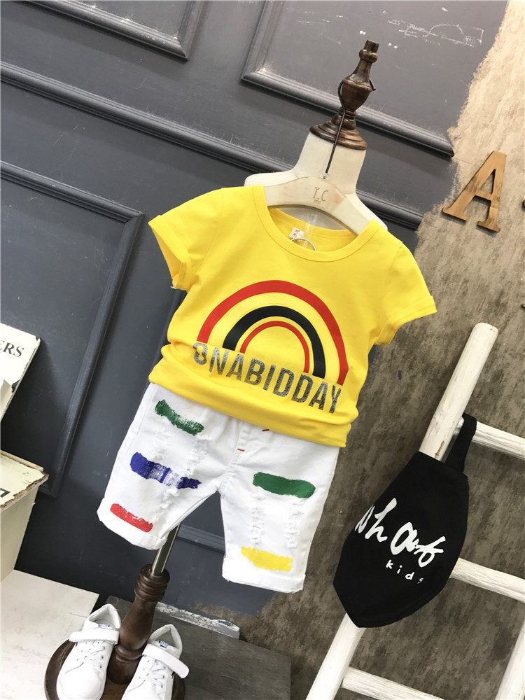 | Цвет: | Желтая радужная футболка 580019 одинарный топ, AQ851 Белые штаны, Желтая радужная футболка, комплект |
