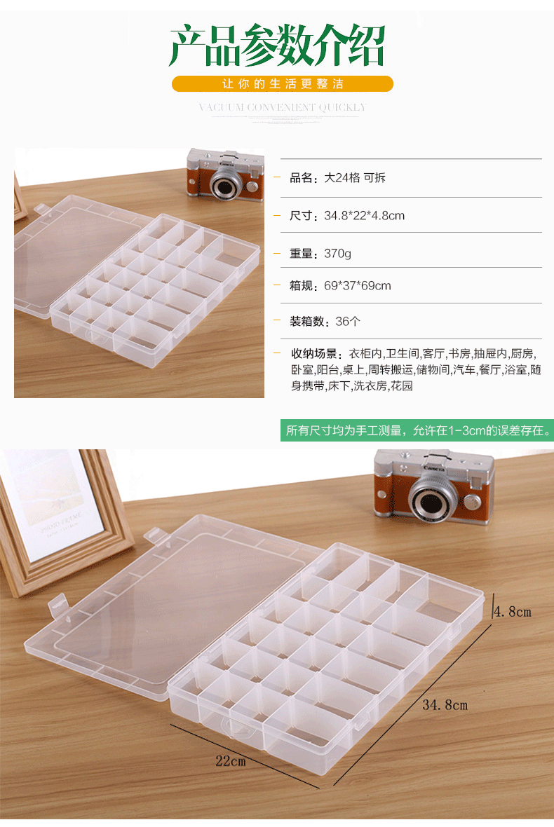 Большой прозрачный пластиковый ящик с 24 сетками, ящик для хранения аппаратного обеспечения, ящик для компонентов, ящик для цифровых компонентов с крышкой