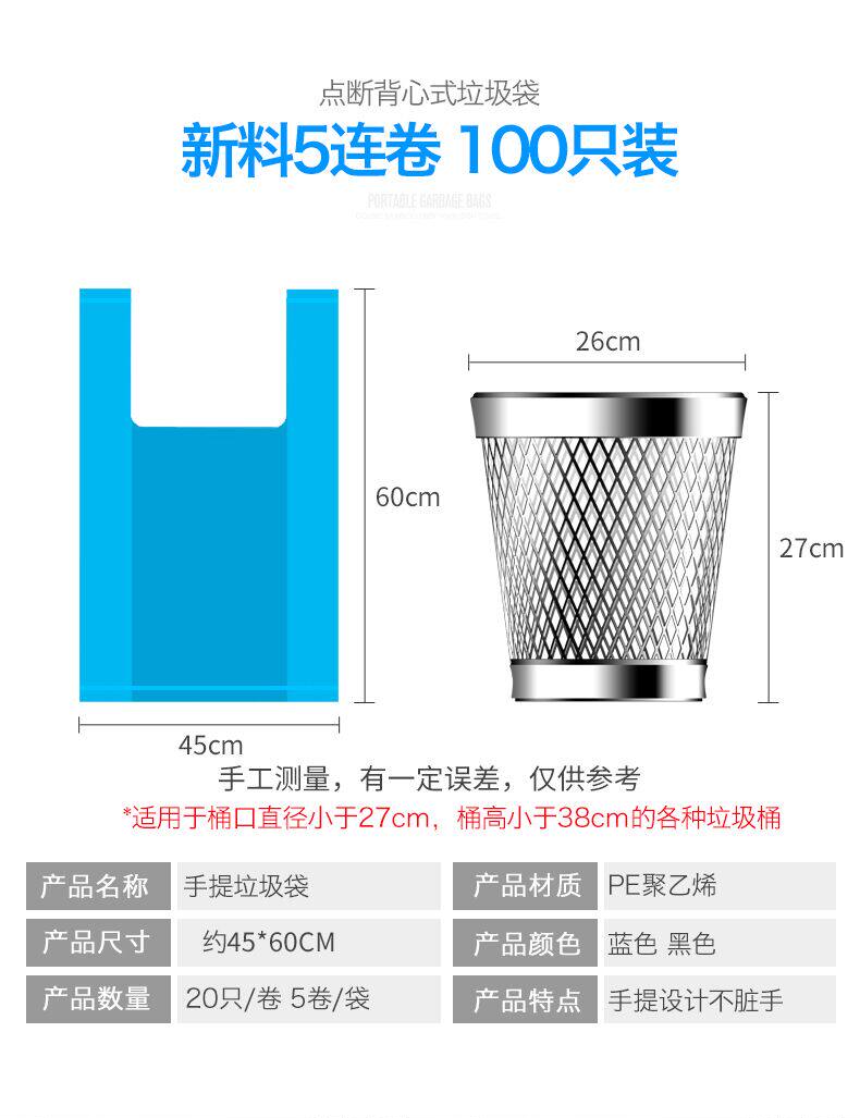 Портативная майка топ, одноразовый мусорный мешок, пластиковое мусорное ведро, увеличенная толщина