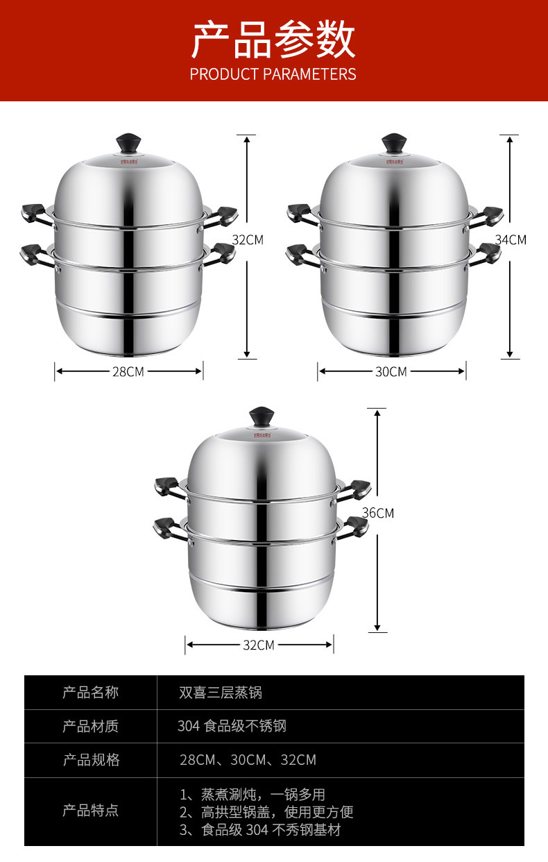 Двойной пароварки 304 из нержавеющей стали с тремя слойной пароваркой электромагнитной плит