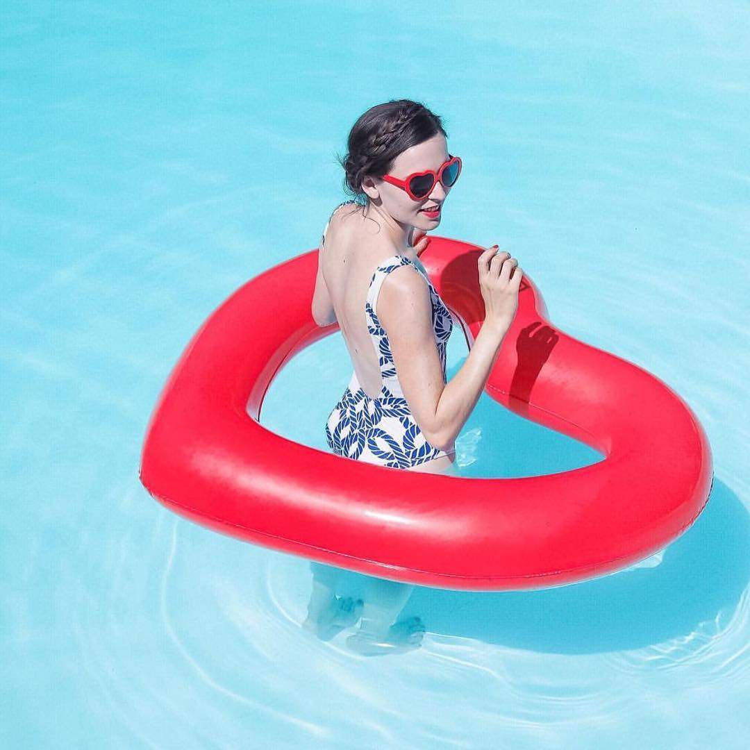 Надувной плавательный круг для детей и взрослых в форме сердца, красные розовые блестки для ногтей, водный реквизит для фотографии