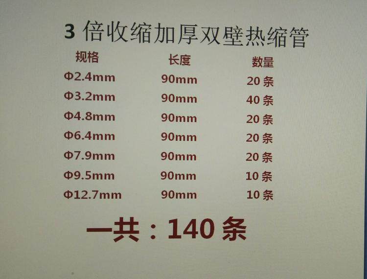 Внутренний слой двойной настенной трубки представляет собой клей с горячим краем, который обладает хорошим клейким характеристиком, с мультипликатором сжатия в 3 раза. После сокращения термосахариды могут полностью запечатать материалы, подключенные к обоим концам, играют роль в влажности. Водонепроницаемая, изоляция и изоляция.(Бесплатная зона доставки: Гонконг, Макао, Тайвань и за рубежом)