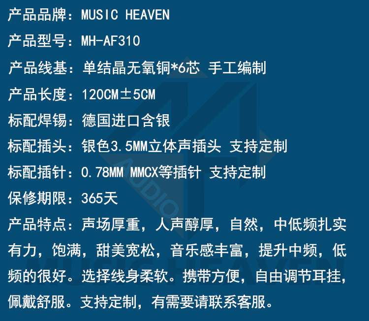 Music Heaven MH-F310 SE846 SE535 IE80S LS200 JH UE 0,78 MMCX A2DC IE40PRO 2.5 4.4 СТИНА