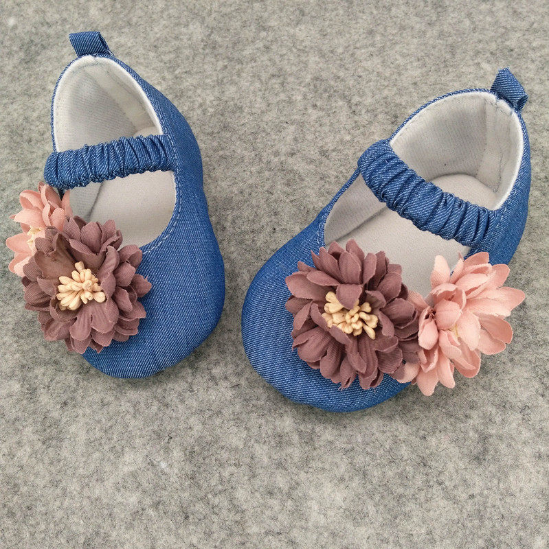 Оригинальная детская джинсовая весенняя обувь для раннего возраста для новорожденных для принцессы, мягкая подошва, в цветочек, тренд сезона, делается под заказ