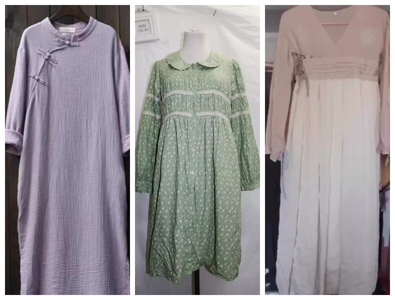 ХлопокЧувство очень хорошее, мягкое и тяжелое.Свежий цветочный сплайсинг, принт в стиле ретро, цвета настолько гармонично соответствуют, дизайн кукол в стиле торта особенно сладкий и красивыйХлопок и льняная ткань, круглая шея, короткие рукава, версия куклы с высокой талией