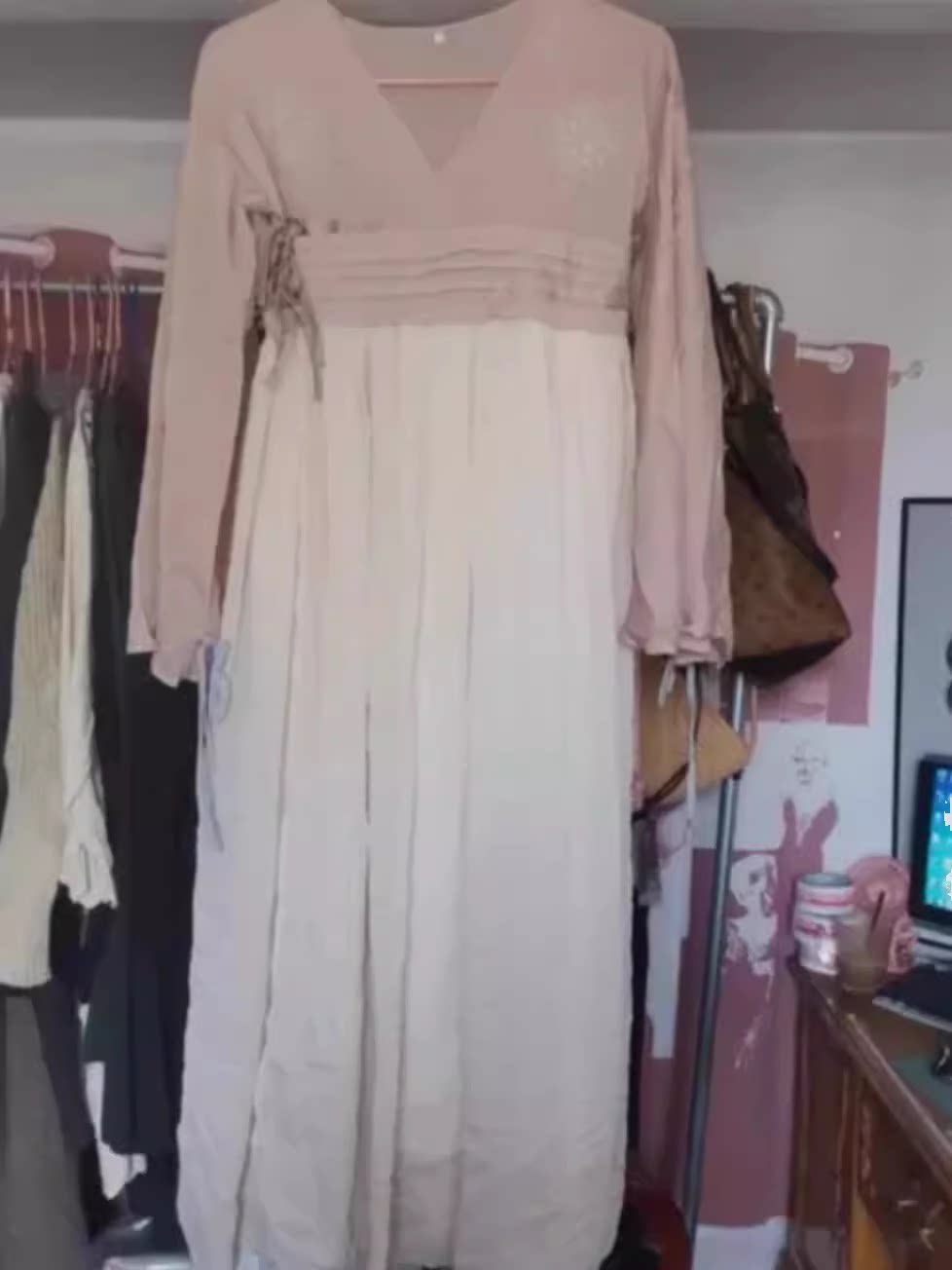 Японская бежевая кукла, милое платье, из хлопка и льна, с вышивкой, высокая талия
