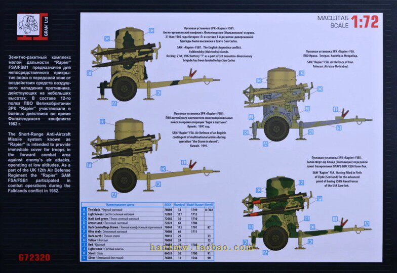 Gran72320 Light Sword FSA/FSB1 Ground -To -Air ракетная система 1/72 Модель сборки