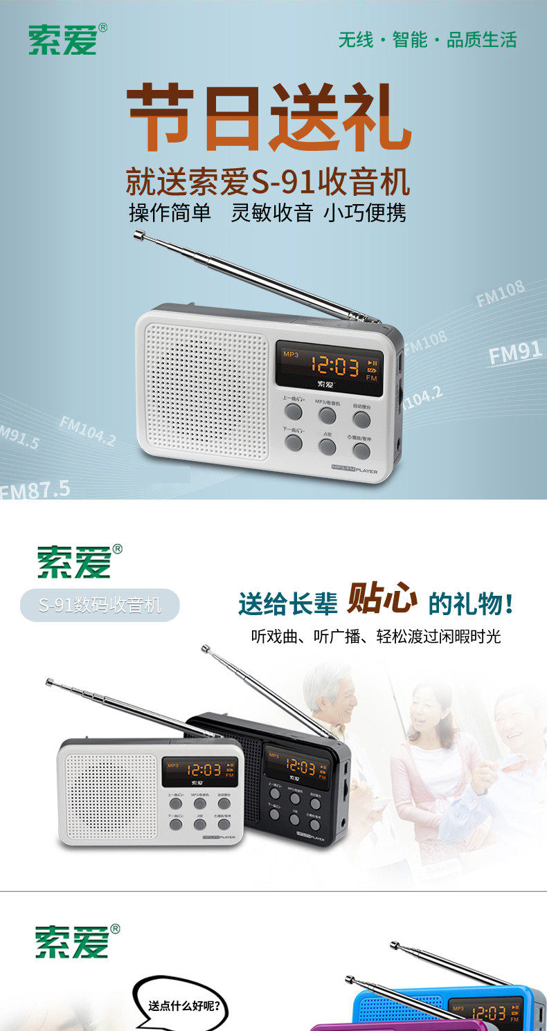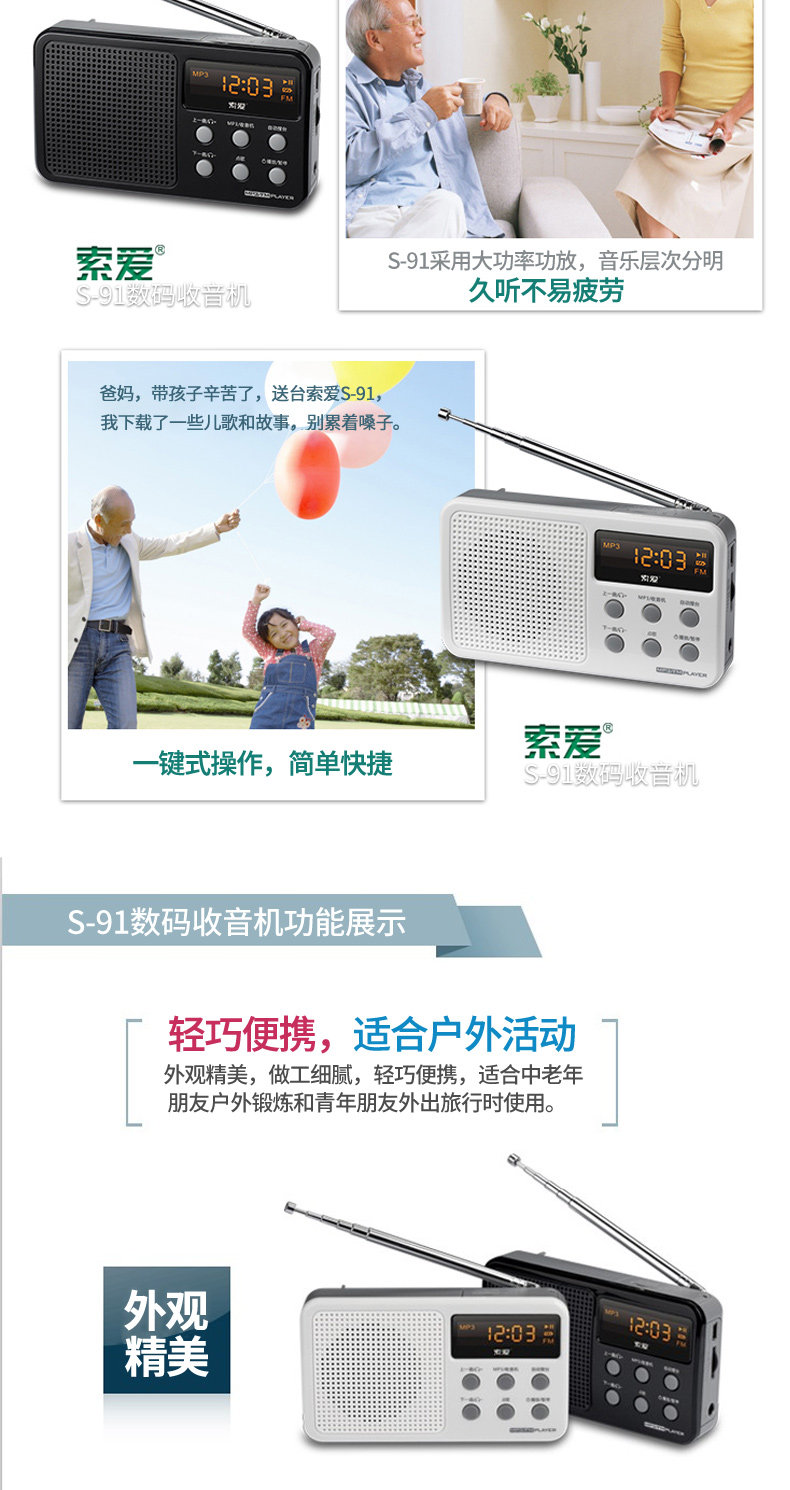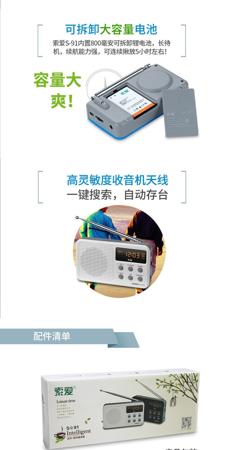 Портативная маленькая батарея для пожилых людей, плеер, P3