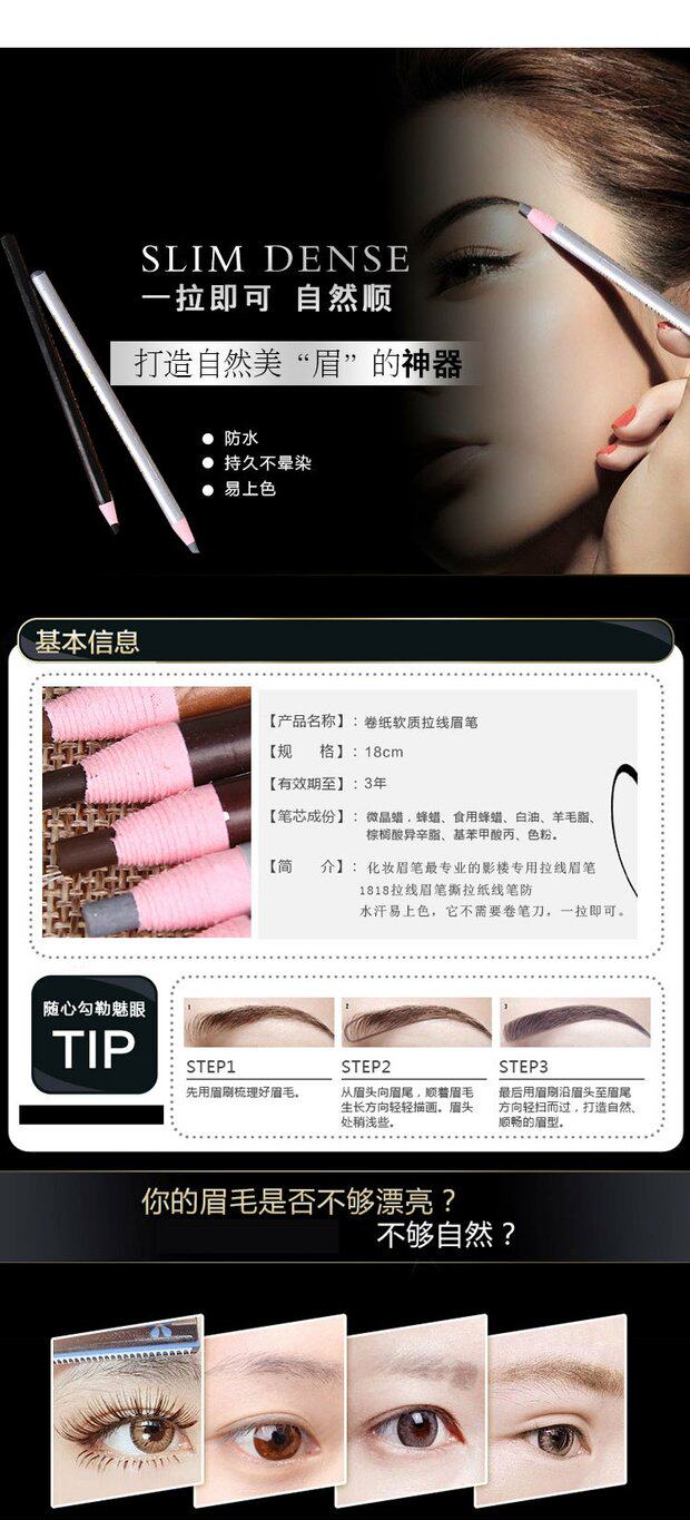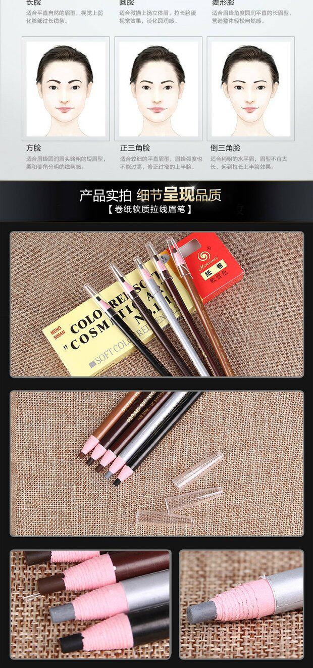 Карандаш для бровей со шнуром, водостойкий карандаш для глаз, краска для бровей, 10 шт, подходит для начинающих, не растекается