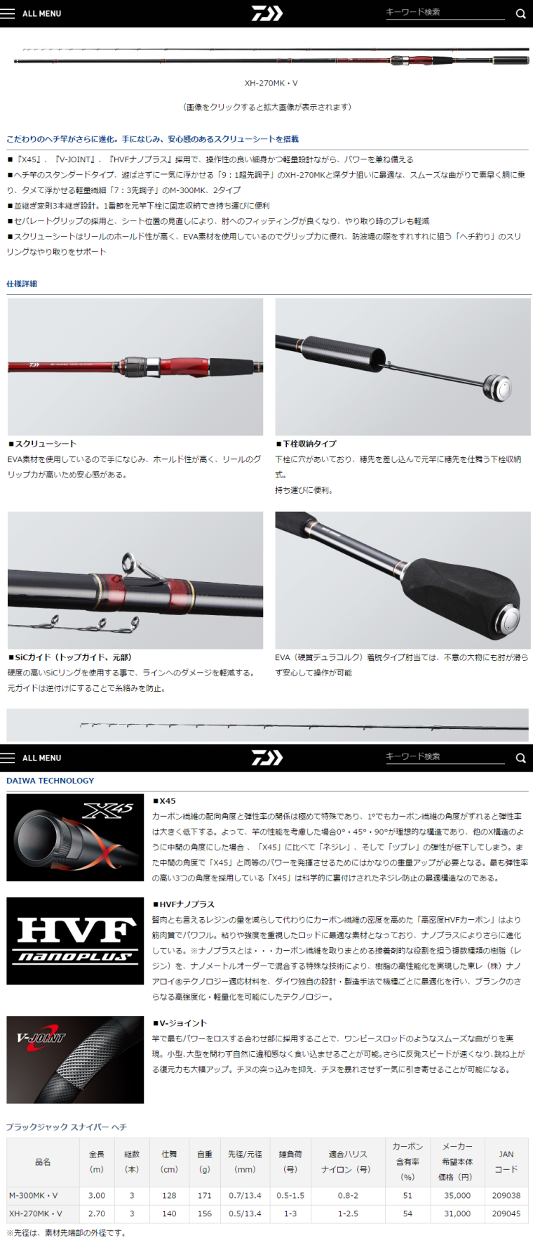 Daiwa Black Sniper Hechi M-300MK ・ V XH-270MK ・ V Черный полюс