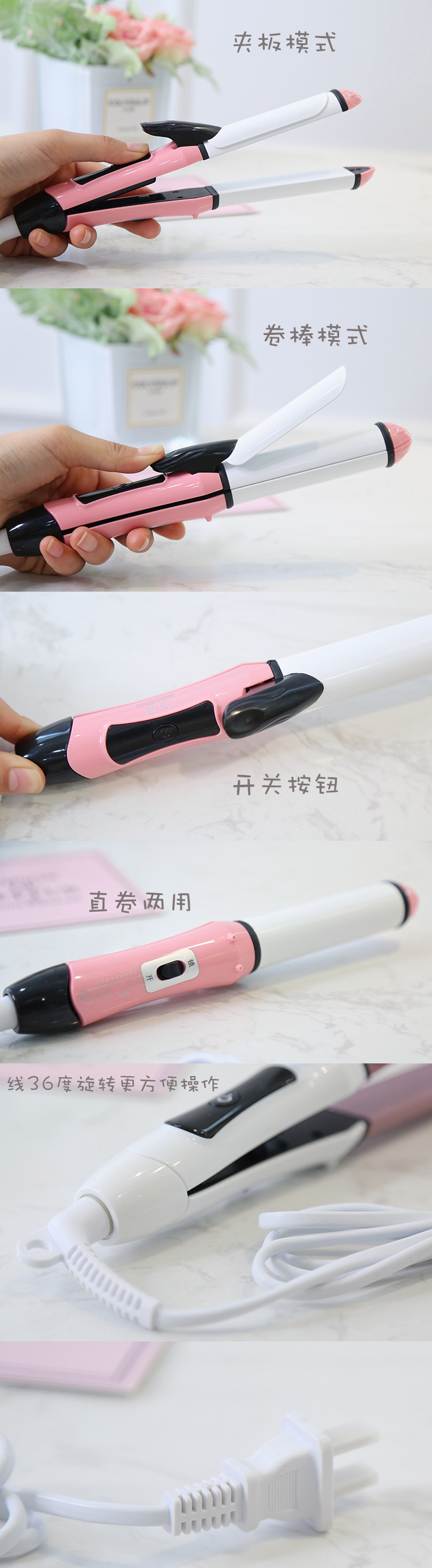 Керлинг -стержневой стержень с двойным использованием мини -неправы, прямые вьющиеся двухподобные воздушные удары, пряжка для волос общежитие для волос общежитие.