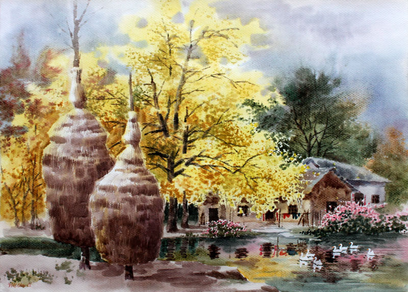 2000 акварельная живопись «Древний коттедж» был выбран на национальной выставке живописи Яйина.