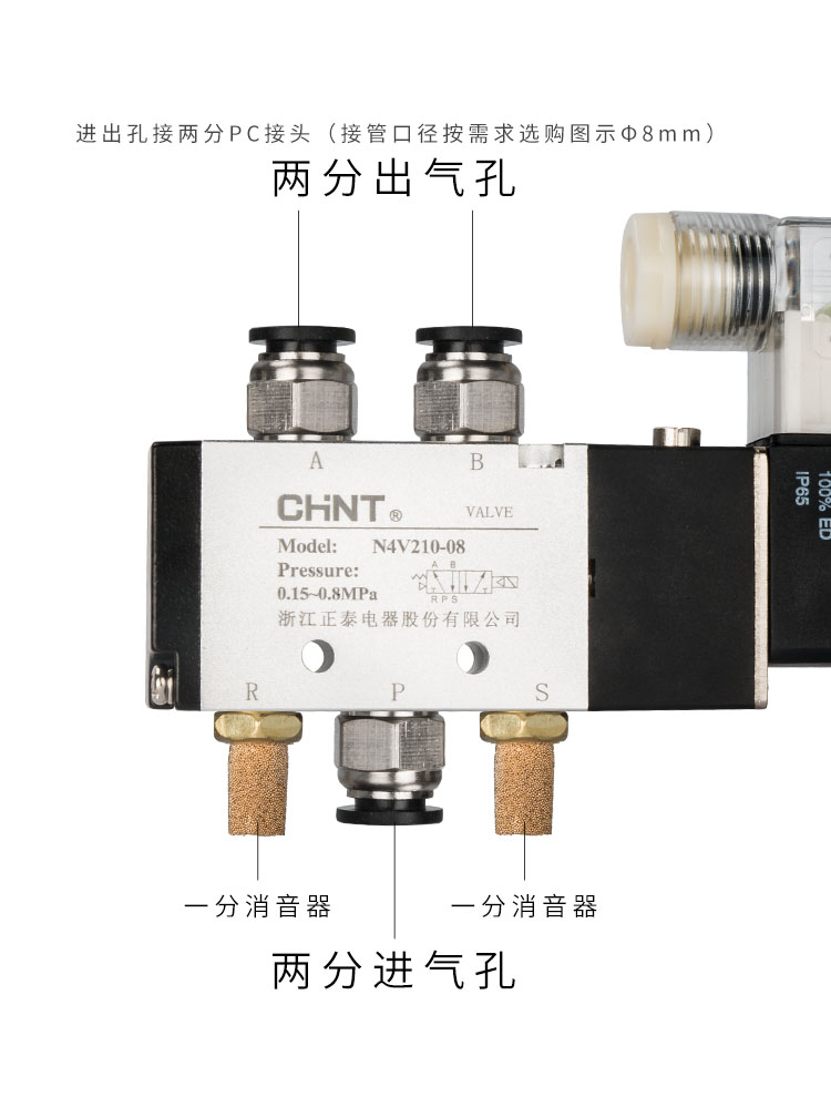 Zhengtai 4V210-08 Power Valve 410 Пневматический 12 воздушного клапана 310 Клапан Группа 24V Электронный клапан 220V клапан 380