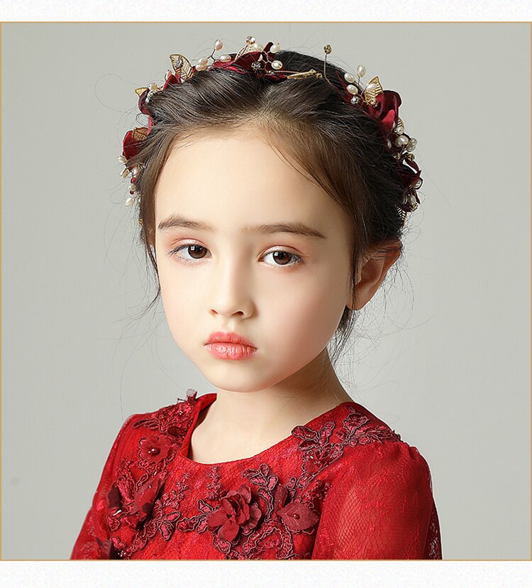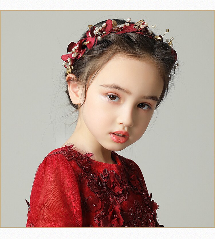 Купить товары Детские головные уборы, Аксессуары-гирлянды для девочек, Повязки на голову, Шоу-аксессуары для рождения, Бордовые лепестки для девочек, Маленькие аксессуары для волос