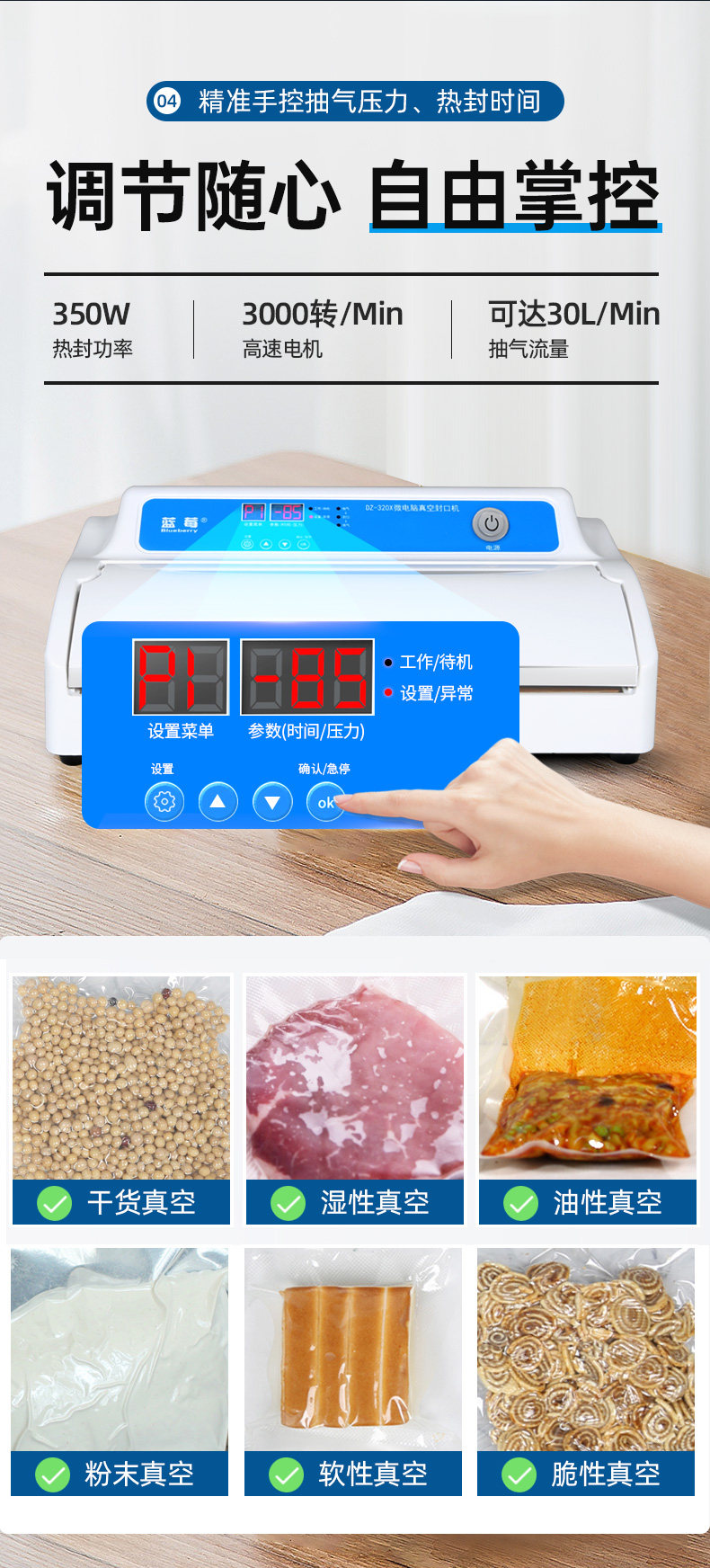 Черничная насосная вакуумная вакуумная машина Полностью автоматическая коммерческая вакуумная машина чай рис рис кирпичный пластиковой пакет вакуумный компьютер пищевая пищевая упаковка.