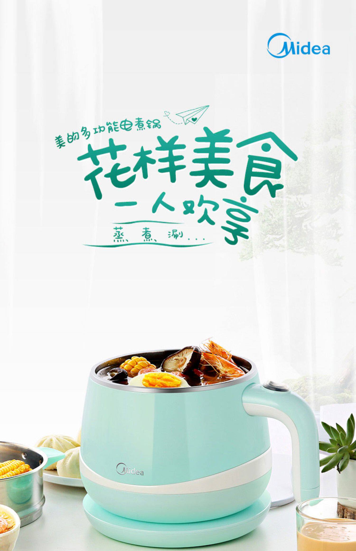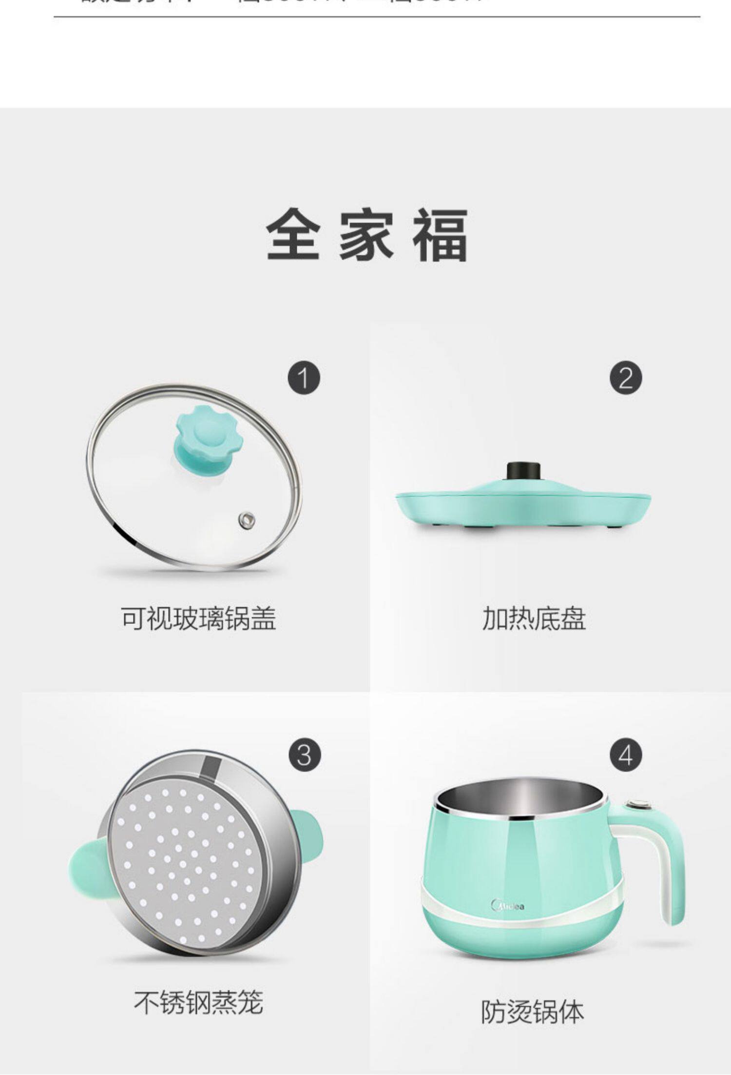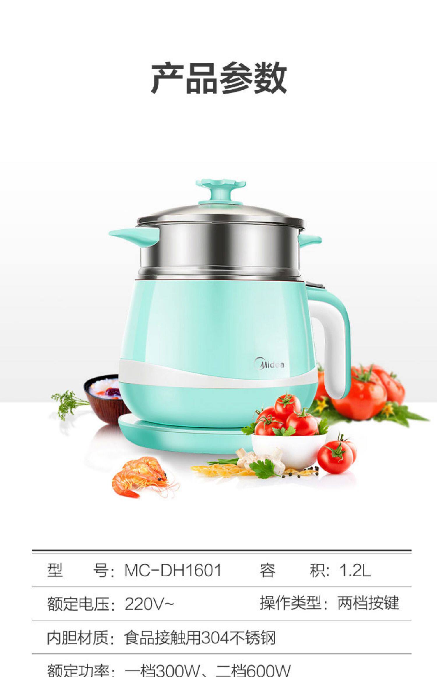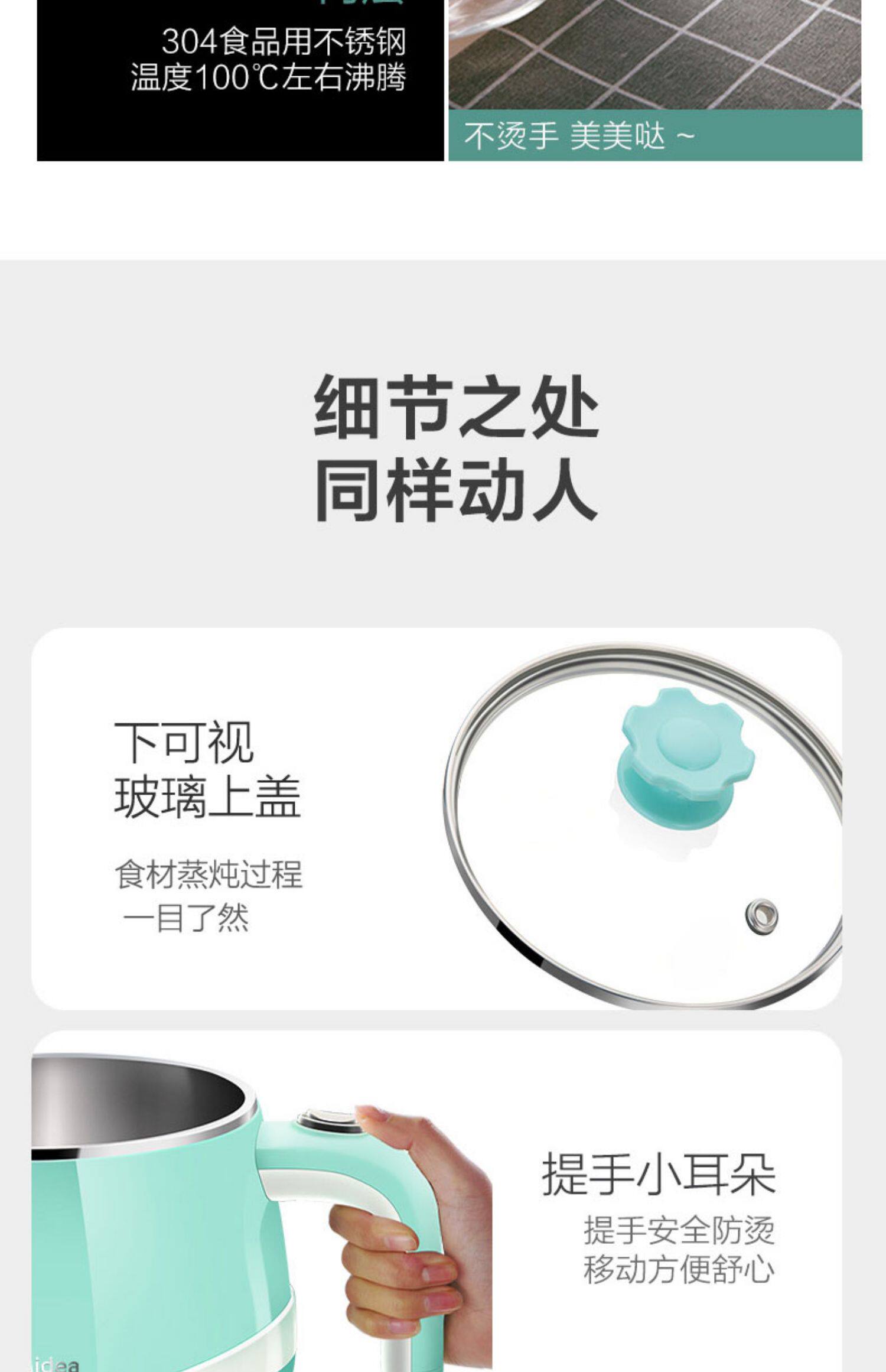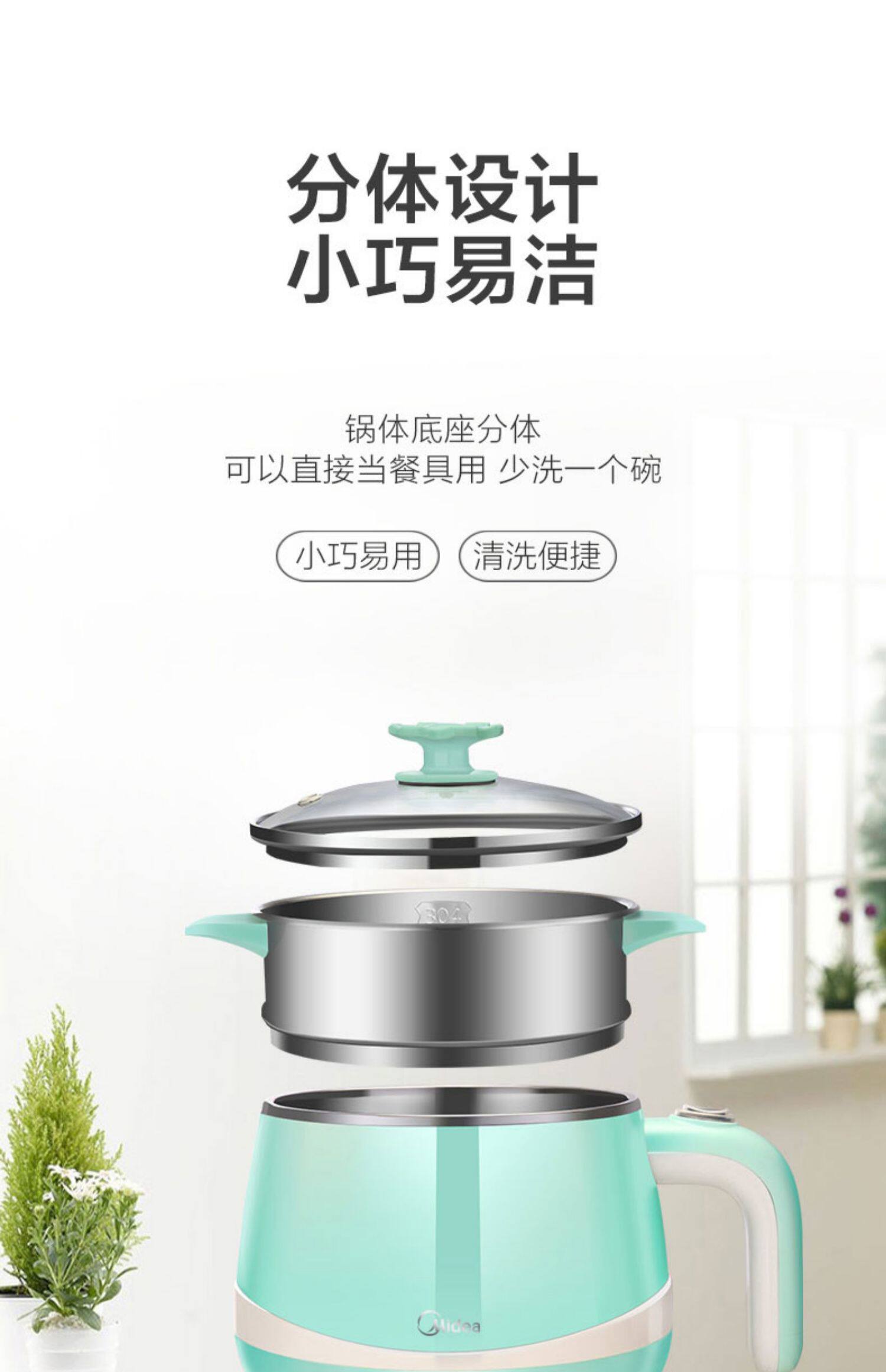 MIDEA Многофункциональный мини -малый электрический кастрюль Электрический кипящий горшок Студент Студент для кипящей лапши горячий горшок Электрический горшок 1601