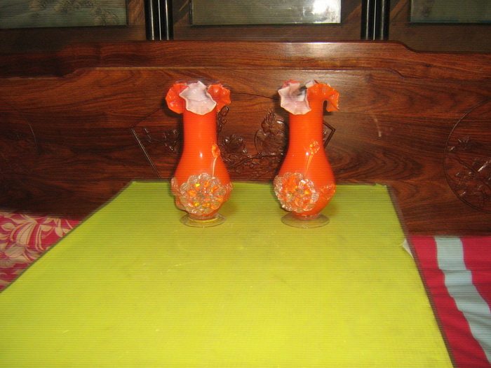 Во время культурной революции пара оранжево -красных стеклянных бутылочных украшений.