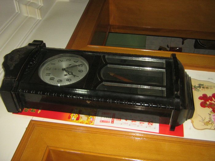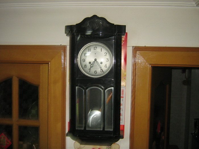 Старые механические висящие часы, часы старого сиденья, большие висящие часы, витрина домашнего магазина с ностальгической коллекцией