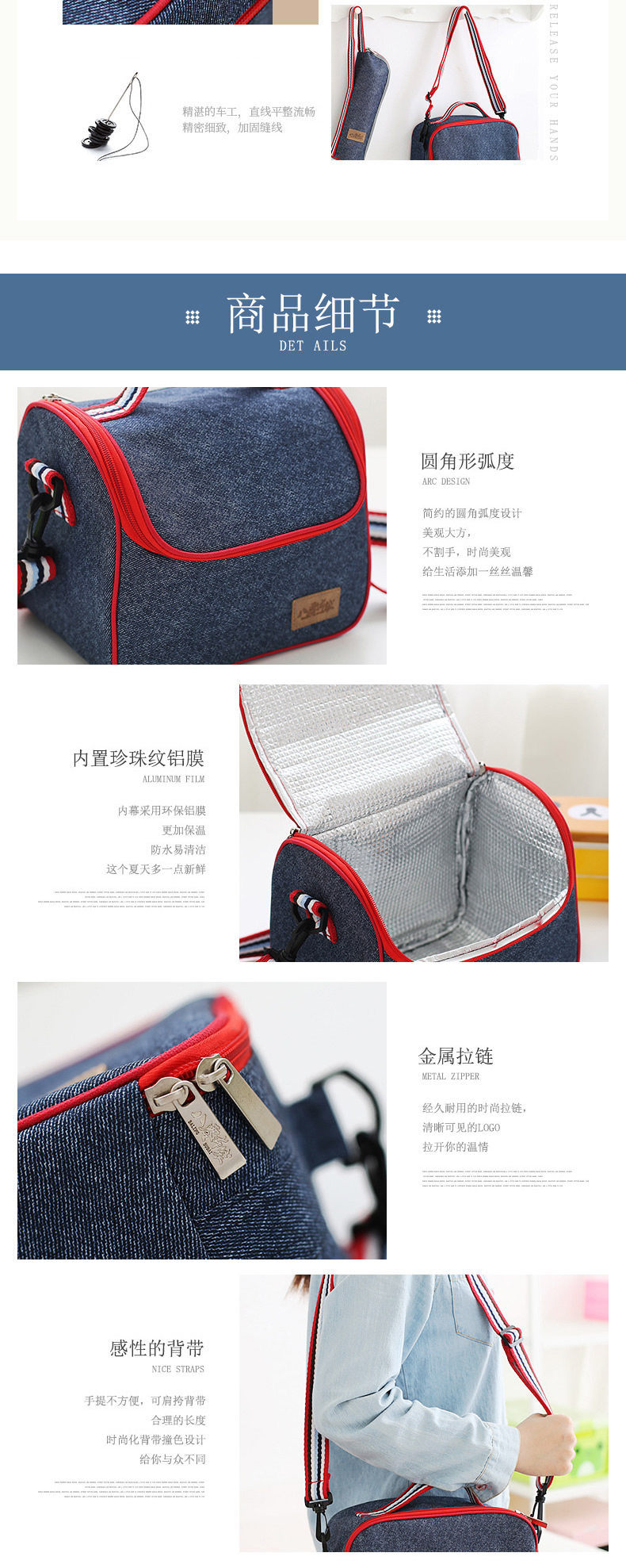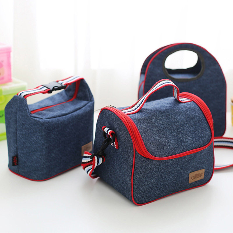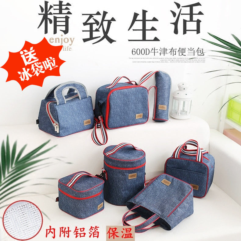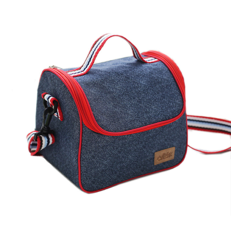 Джинсовый термос, сумка для ланча, водонепроницаемая портативная сумка через плечо для школьников и студентов, увеличенная толщина, ткань оксфорд, сумка для еды